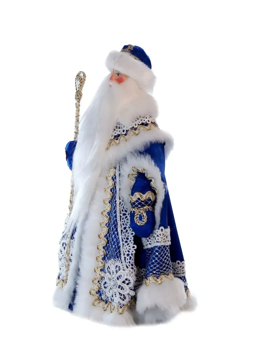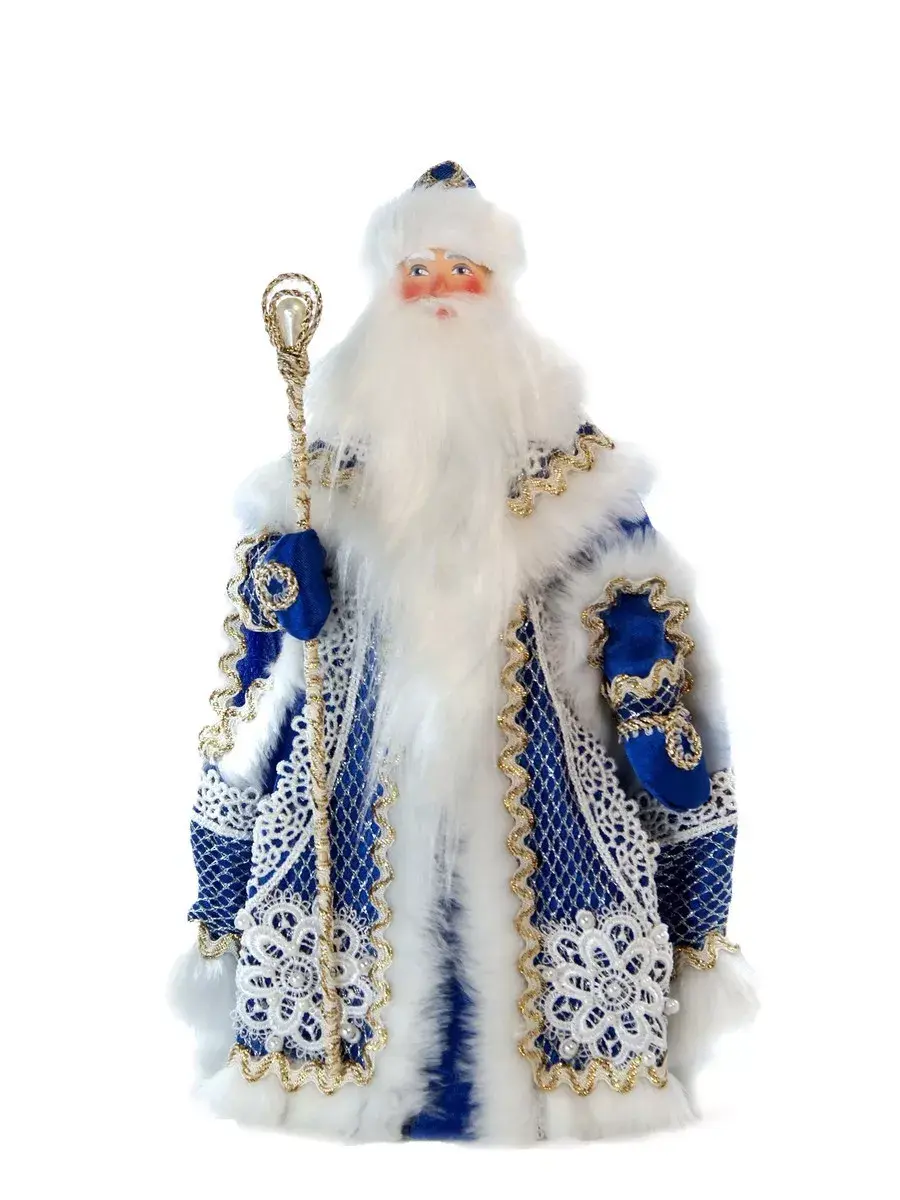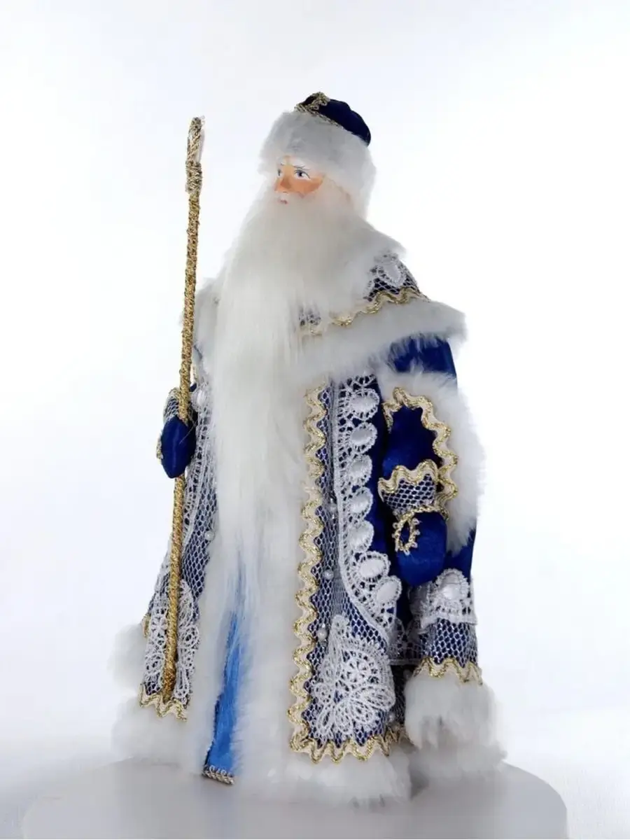 Фигурка под елку Дед Мороз с посохом в нарядной шубе с кружевами и мехом украсит ваш новогодний праздник!