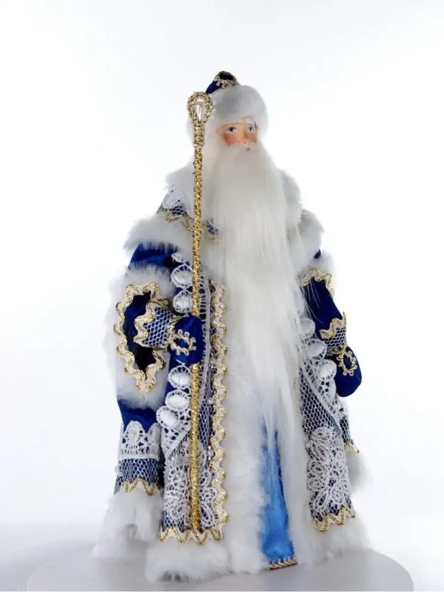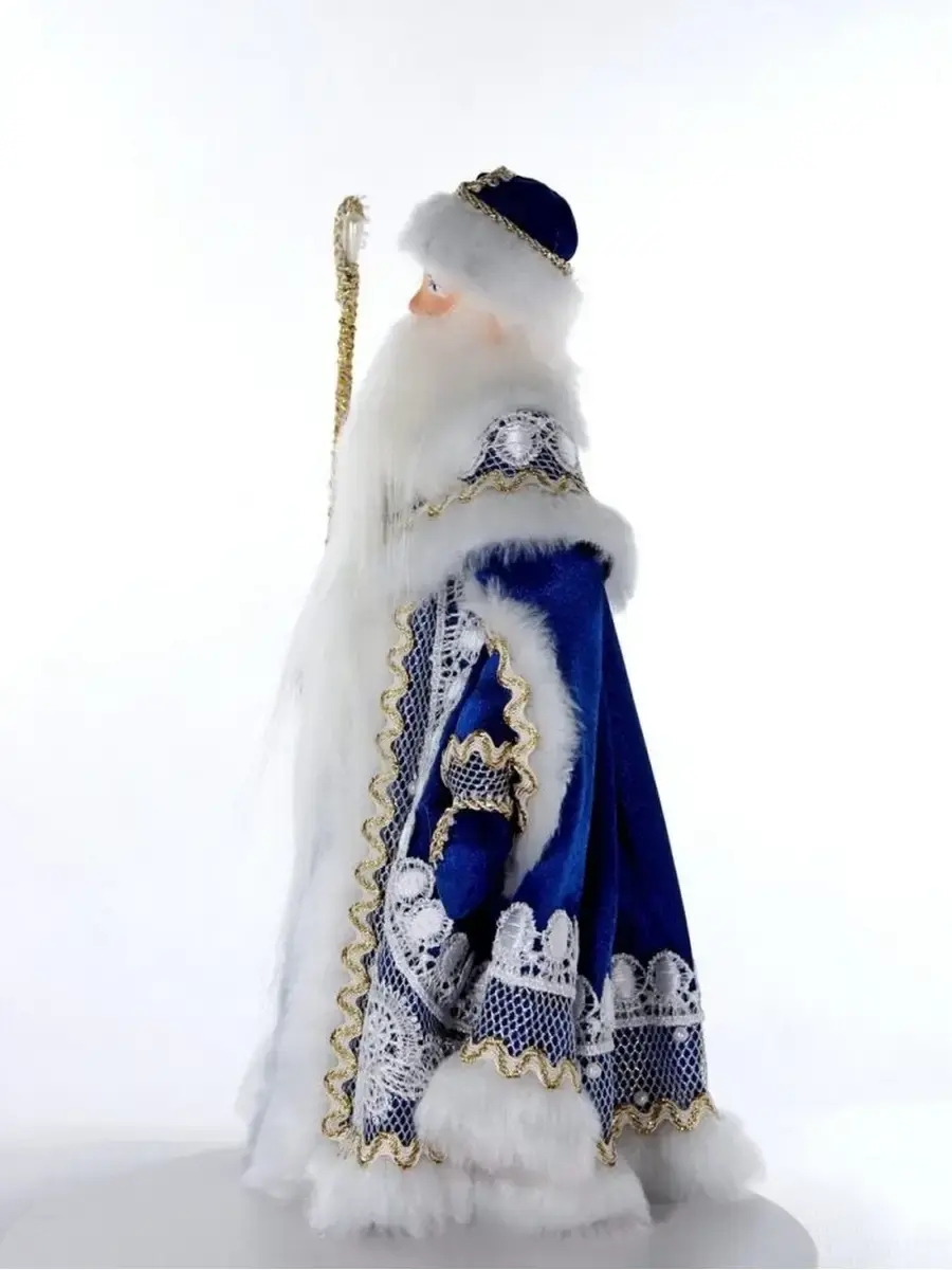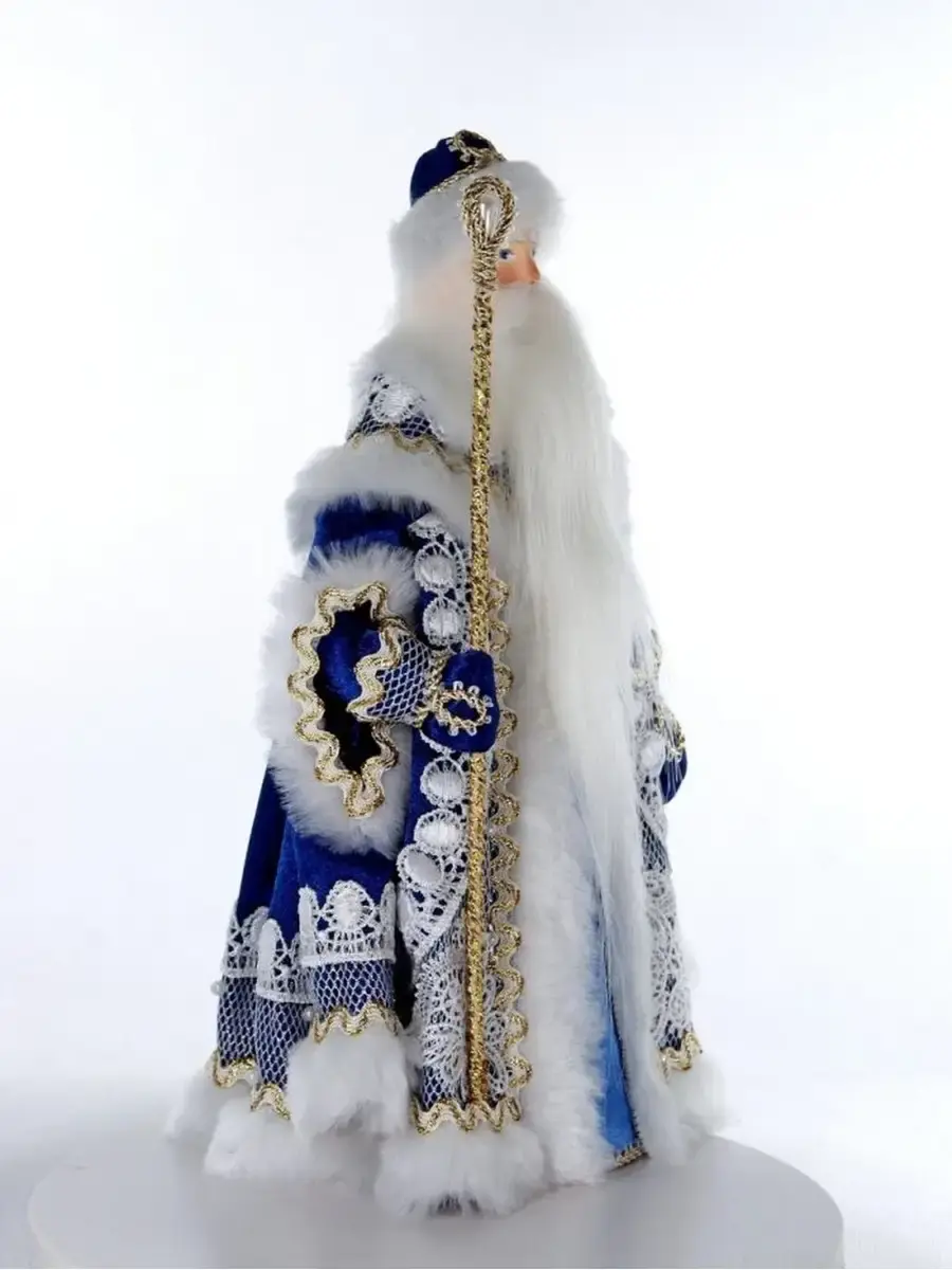 Фигурка под елку Дед Мороз с посохом в нарядной шубе с кружевами и мехом украсит ваш новогодний праздник!