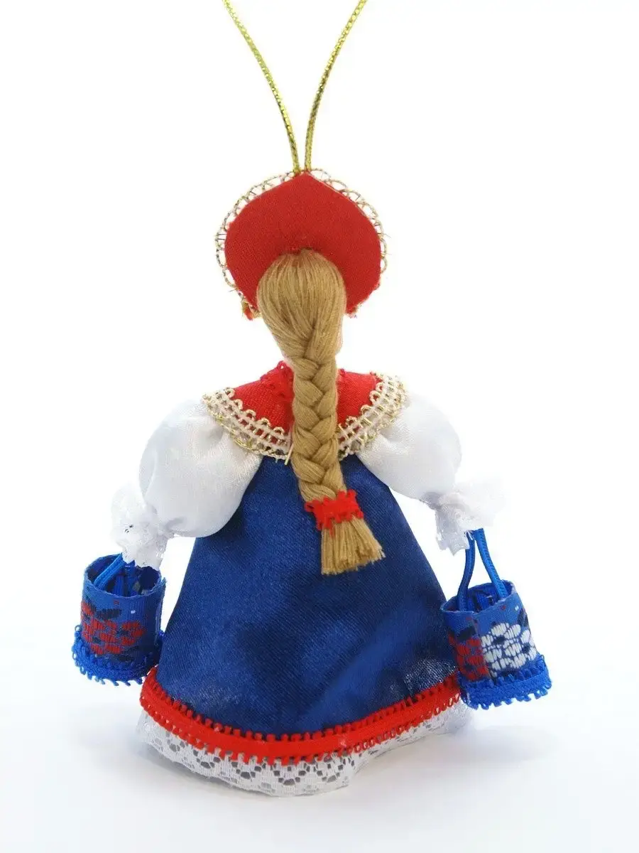 Кукла ручной работы по мотивам русского народного костюма. Можно повесить на ёлку или украсить интерьер. Кукла создана в Санкт-Петербурге профессиональными мастерами и художниками из качественных, безопасных материалов российского производства.Голова куклы выполнена из фарфора в собственной керамической мастерской (горячий обжиг при температуре +1200 градусов Цельсия), расписана акриловыми/темперными красками.Кукла Водоноска является изделием народно-художественного промысла России и станет замечательным подарком или сувениром для каждого, кого Вы захотите порадовать. Высота 12 см, костюм текстильный несъемный, ножек у данной модели не предусмотрено. Поставляется в крафтовой транспортировочной коробке с фирменным логотипом, зип-пакете и пузырчатой плёнке.
