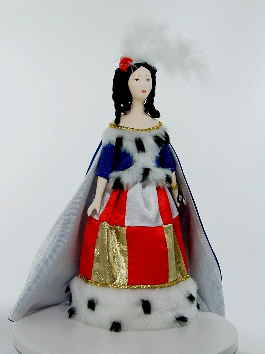 - Голова, торс и руки выполнены из фарфора в собственной керамической мастерской (горячий обжиг при температуре +1200 градусов Цельсия), расписаны акриловыми/темперными красками. Конусная кукла с плоским дном, костюм текстильный несъемный.