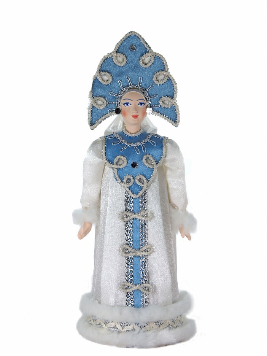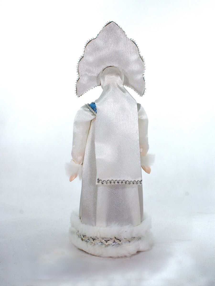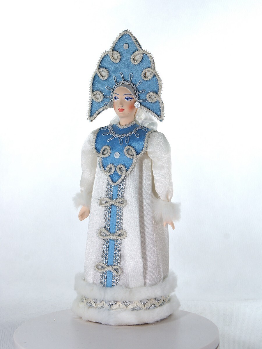 Фарфоровая кукла коллекционная Снегурочка в белой шубе и резном кокошнике. Новогодняя игрушка под ёлку ручной работы
