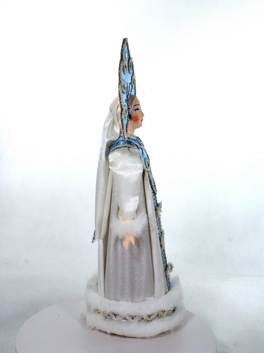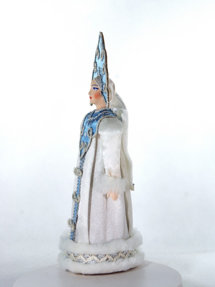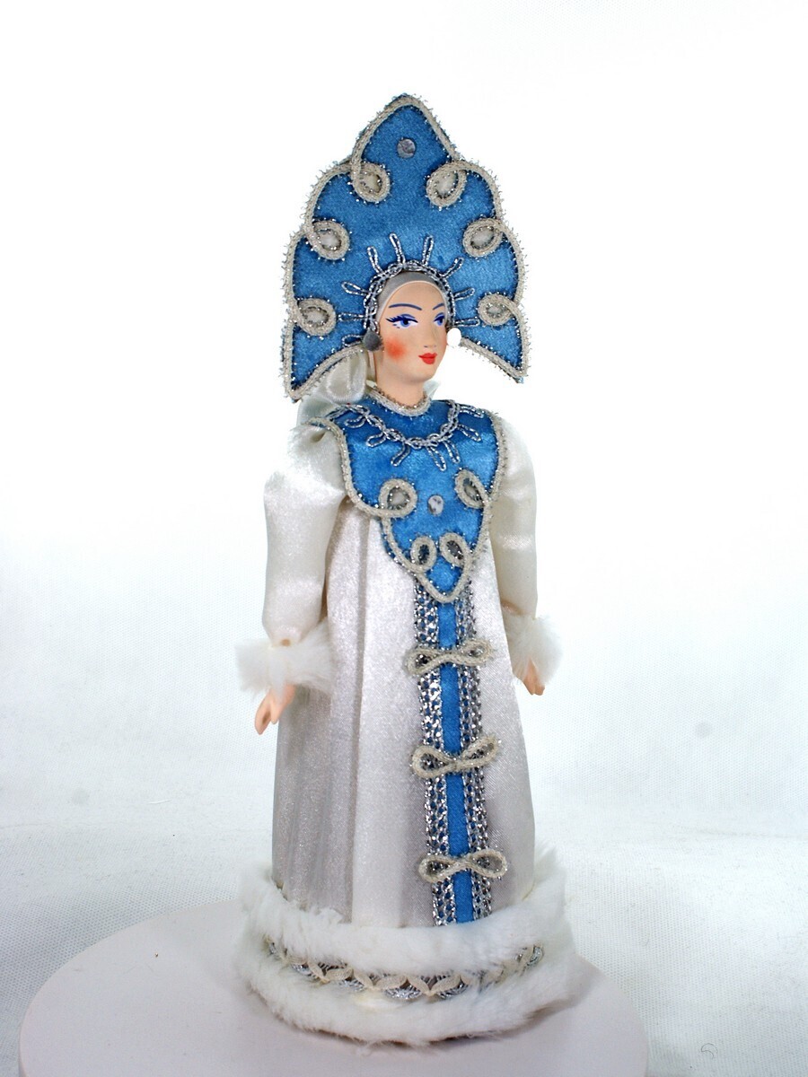 Фарфоровая кукла коллекционная Снегурочка в белой шубе и резном кокошнике. Новогодняя игрушка под ёлку ручной работы