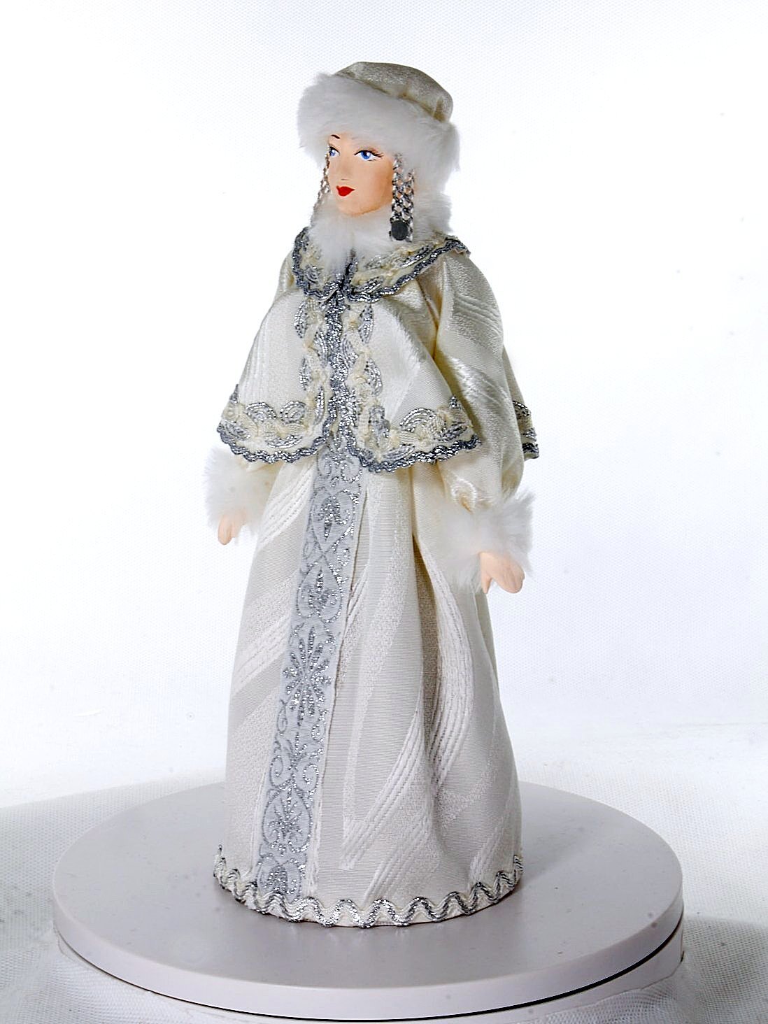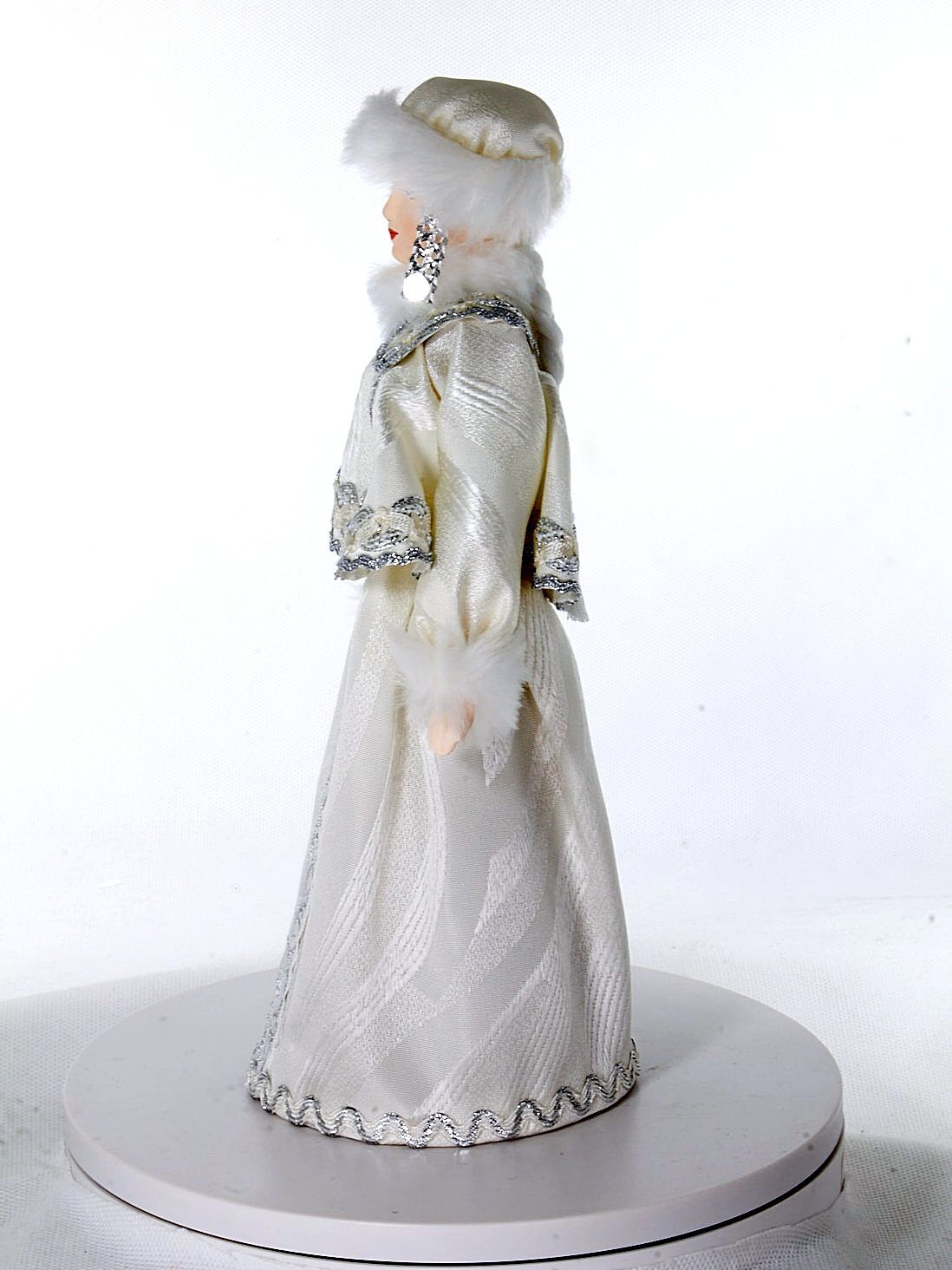 Фарфоровая кукла коллекционная Снегурочка в белой шубе. Новогодняя игрушка под ёлку ручной работы