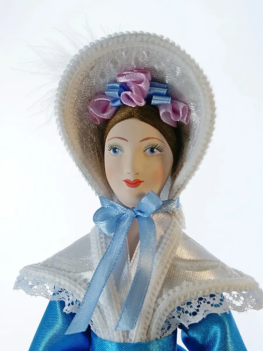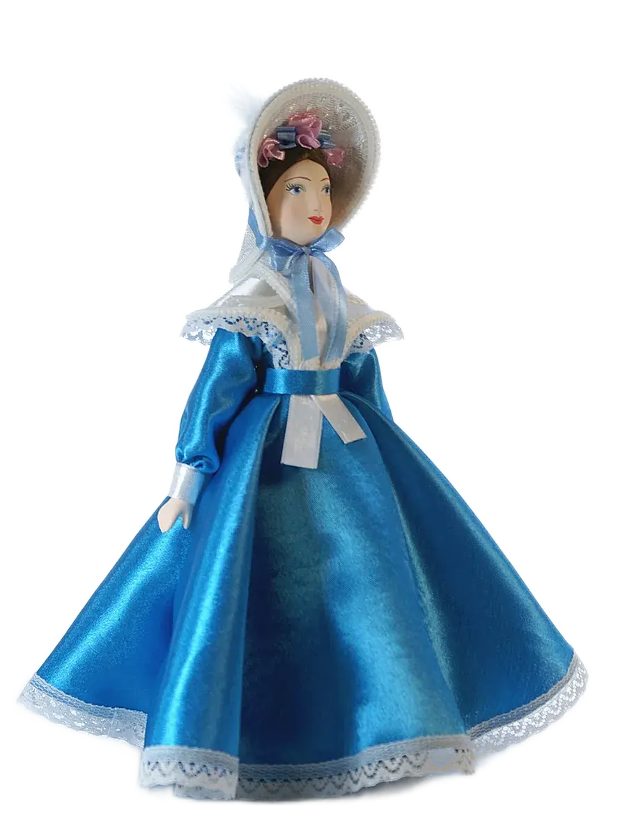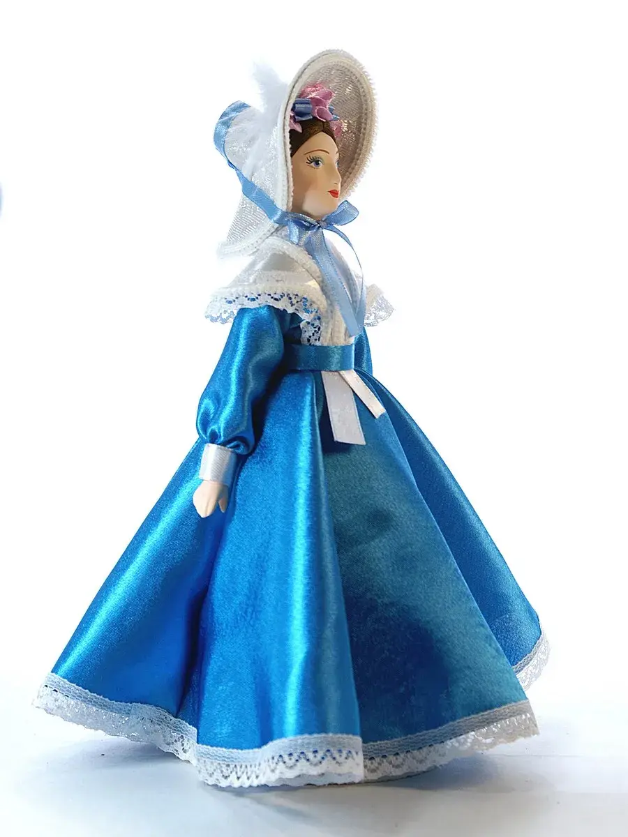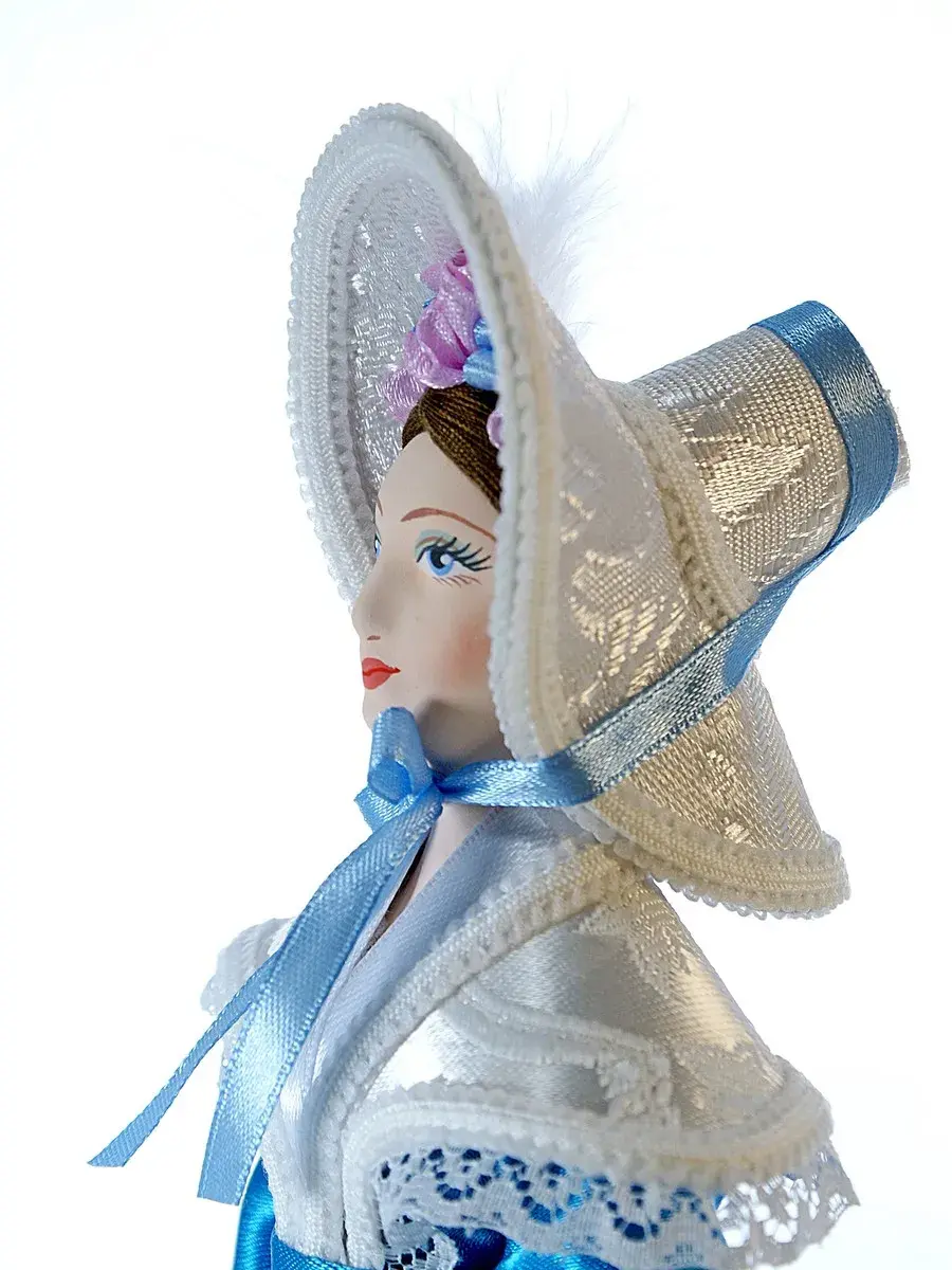 Фарфоровая коллекционная кукла в атласном платье 19 века и в шляпе. Малотиражная модель. Сделано в Санкт-Петербурге мастерами предприятия народных художественных промыслов «Потешный промысел». Ручная работа.