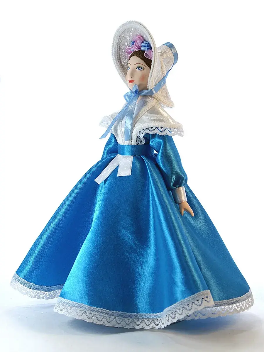 Кукла коллекционная Петербурженка в модном европейском костюме Пушкинской эпохи — это изящный, трогательный сувенир, который станет прекрасным подарком вашим близким, друзьям или гармонично дополнит и оживит интерьер, офис, выставочный зал, украсит дом или обогатит коллекцию. Фигурка представляет собой барышню в стиле французских мод 19 столетия, олицетворяющую изысканность и элегантность русского дворянства.