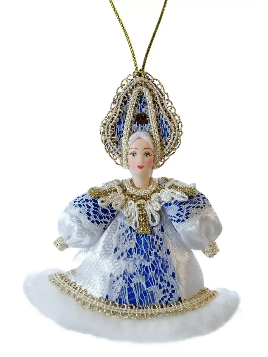 Кукла-подвеска интерьерная фарфоровая ручной работы Снегурочка. Хороший подарок на 2025 год.