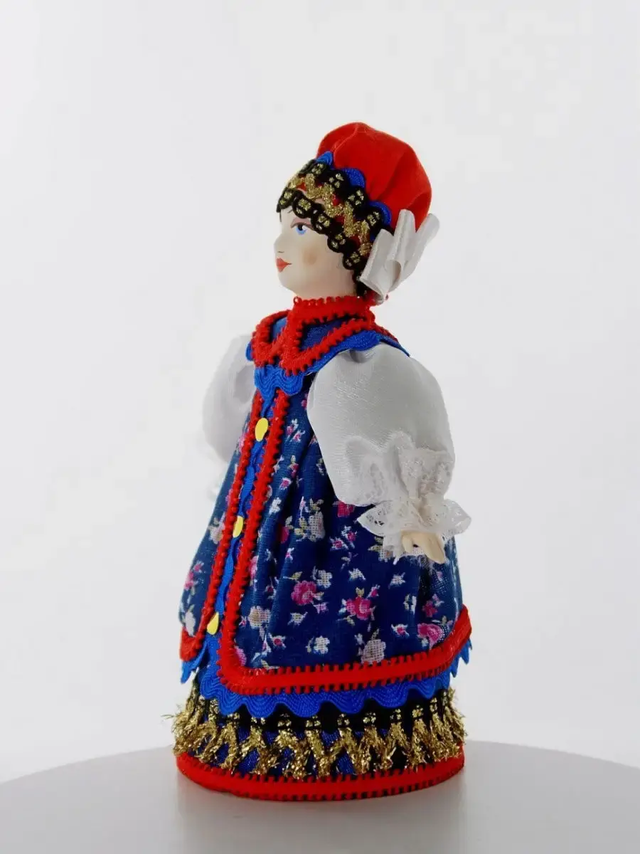 Кукла сувенирная фарфоровая в русском костюме с тремя бантами.