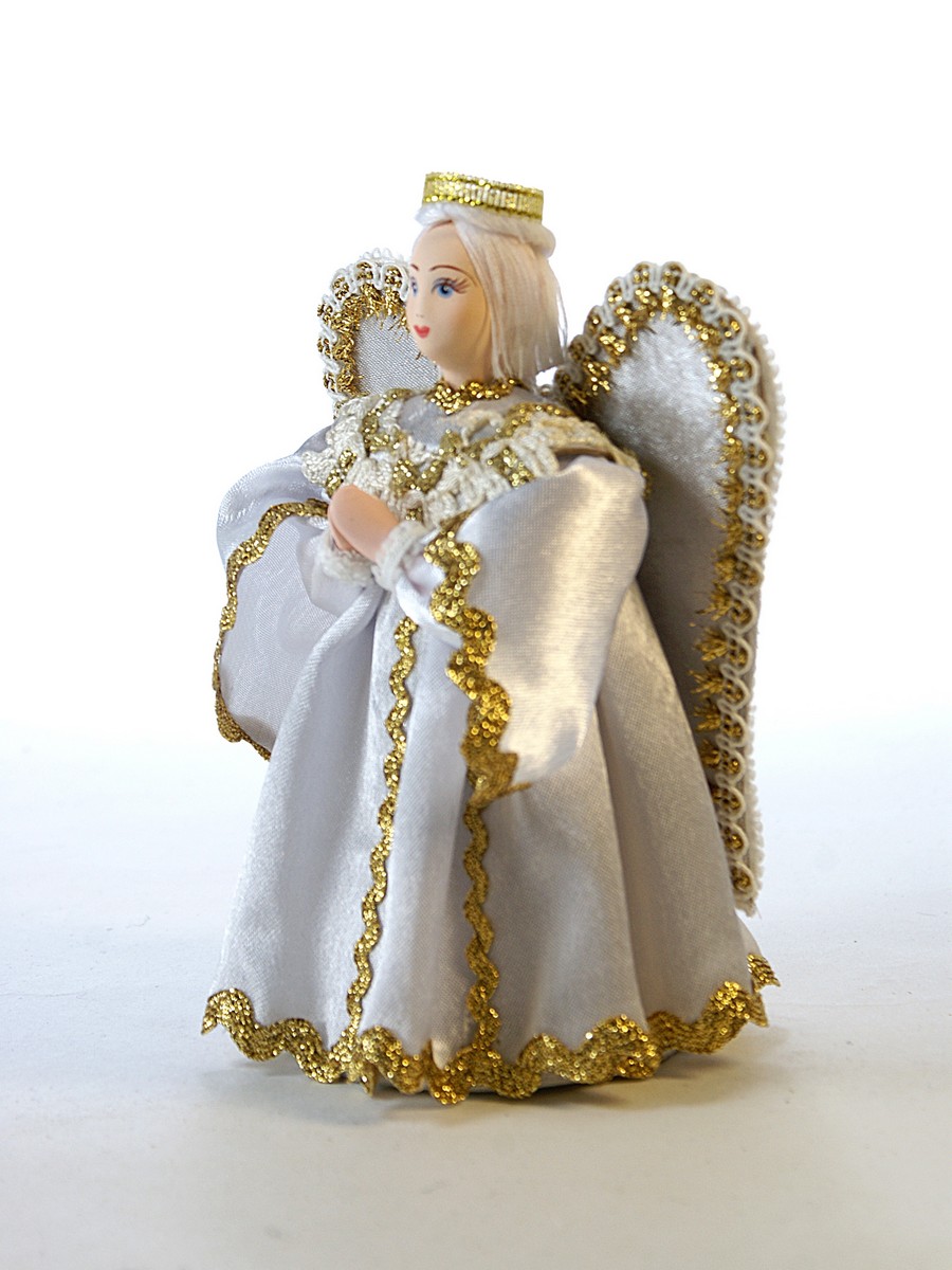 \nИзысканное творение петербургских мастеров — коллекционная статуэтка ангелочка, воплощающая чистоту и свет. Созданная в традициях «Потешного промысла», эта кукла станет источником умиротворения и гармонии в вашем доме.\nОсобенности изящной модели