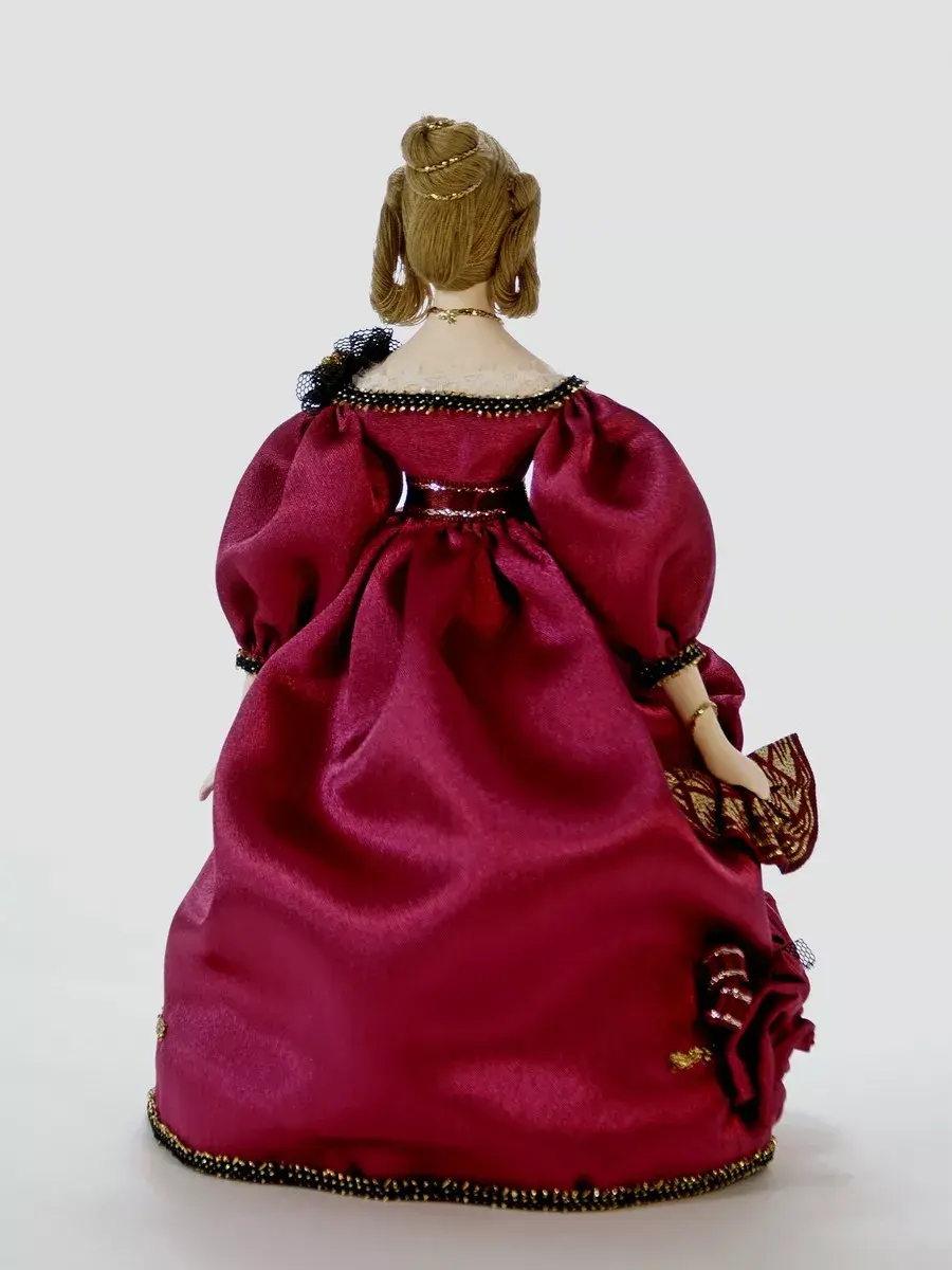 Кукла сувенирная ручной работы в светском историческом костюме середины 19 века. Петербурженка в бальном платье с кринолином, веером в руке. Пушкинская эпоха.