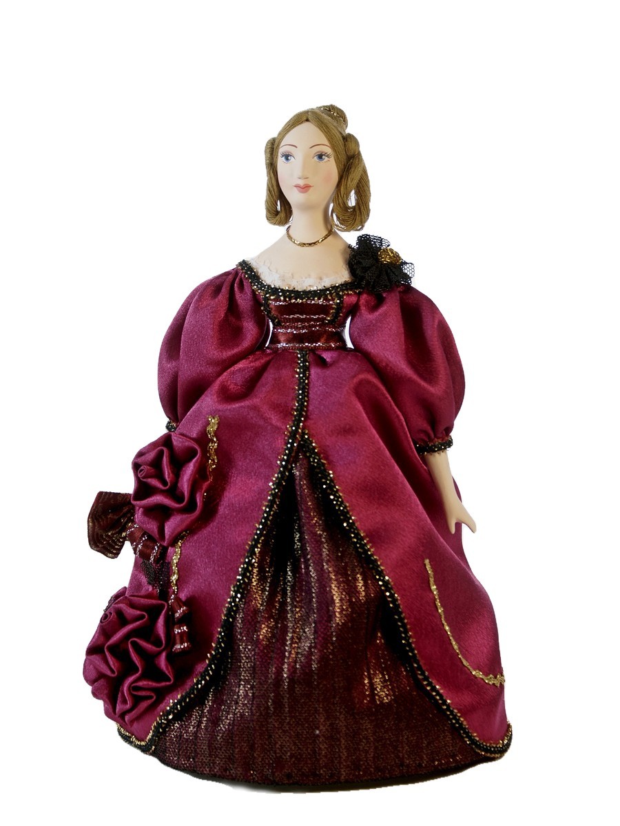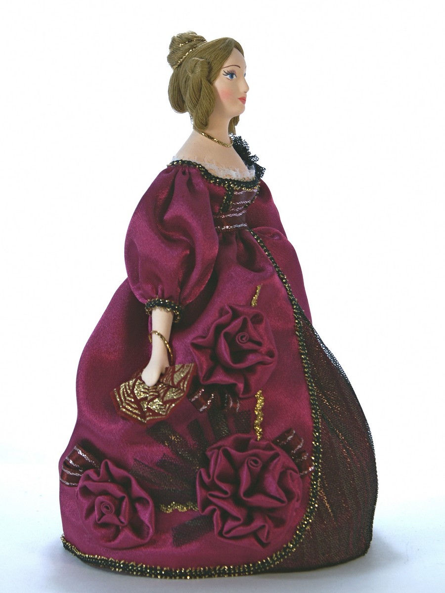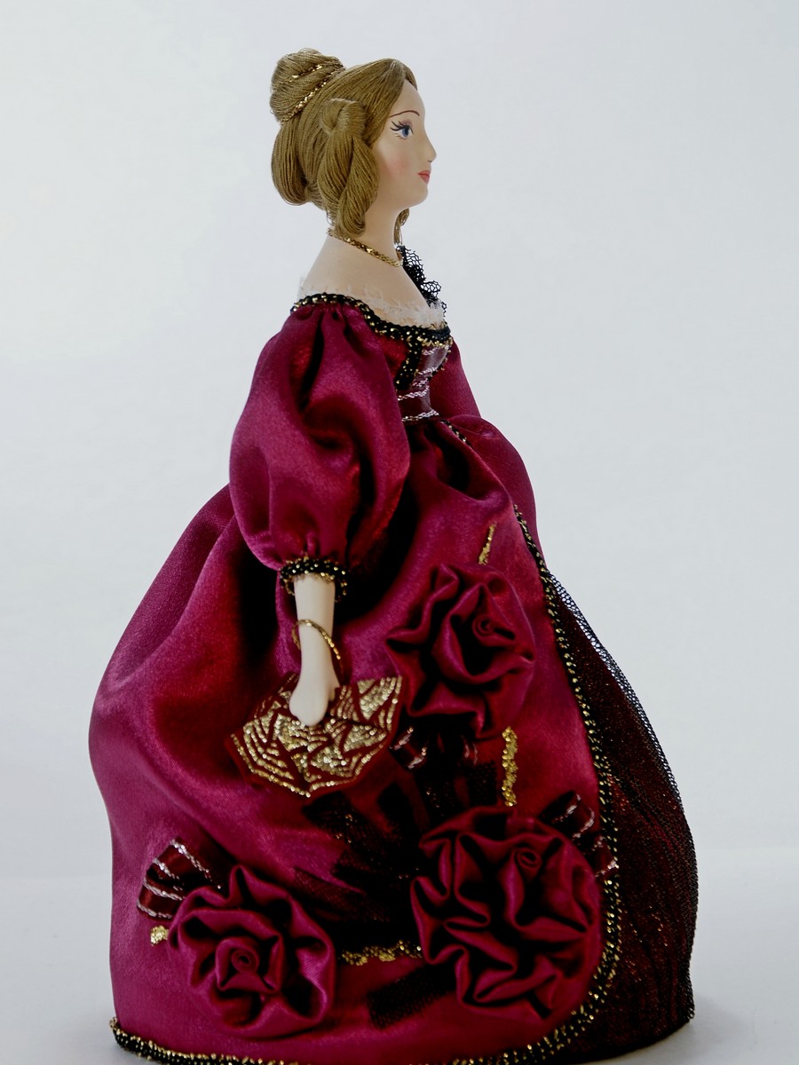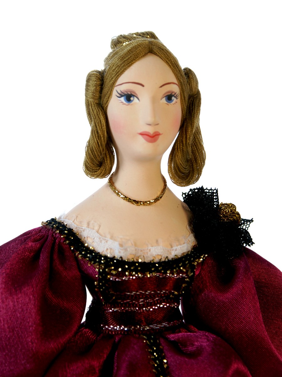 Кукла интерьерная Потешного промысла, ручной работы из коллекции Светский исторический костюм. Мода 1830-е г., Европа. Для подарка, для интерьера, в коллекцию. Фарфор, текстиль. Высота 27 см.