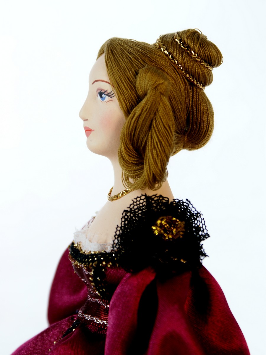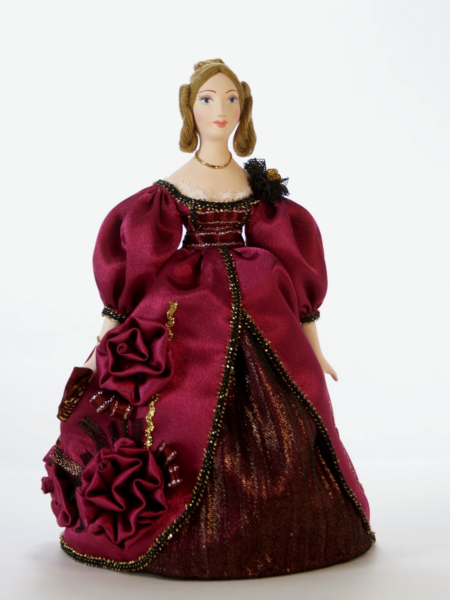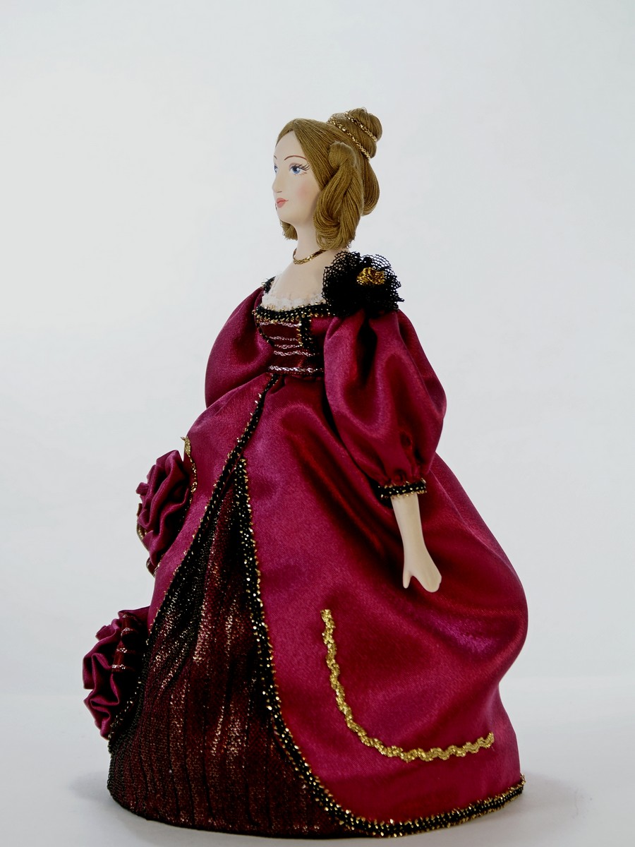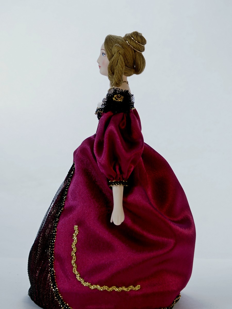 Кукла интерьерная Потешного промысла, ручной работы из коллекции Светский исторический костюм. Мода 1830-е г., Европа. Для подарка, для интерьера, в коллекцию. Фарфор, текстиль. Высота 27 см.