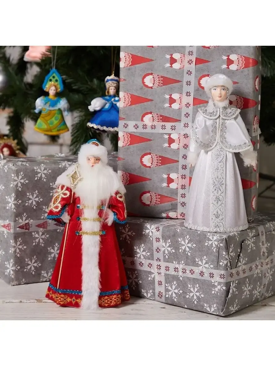 Сказочное творение петербургских мастеров — величественная статуэтка Деда Мороза, которая станет главным украшением вашего новогоднего праздника. Созданная в традициях «Потешного промысла», эта кукла воплощает все волшебство зимних чудес.