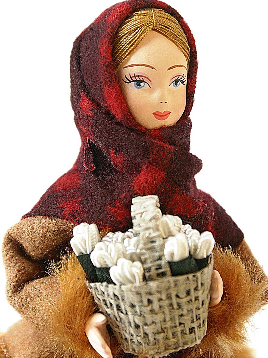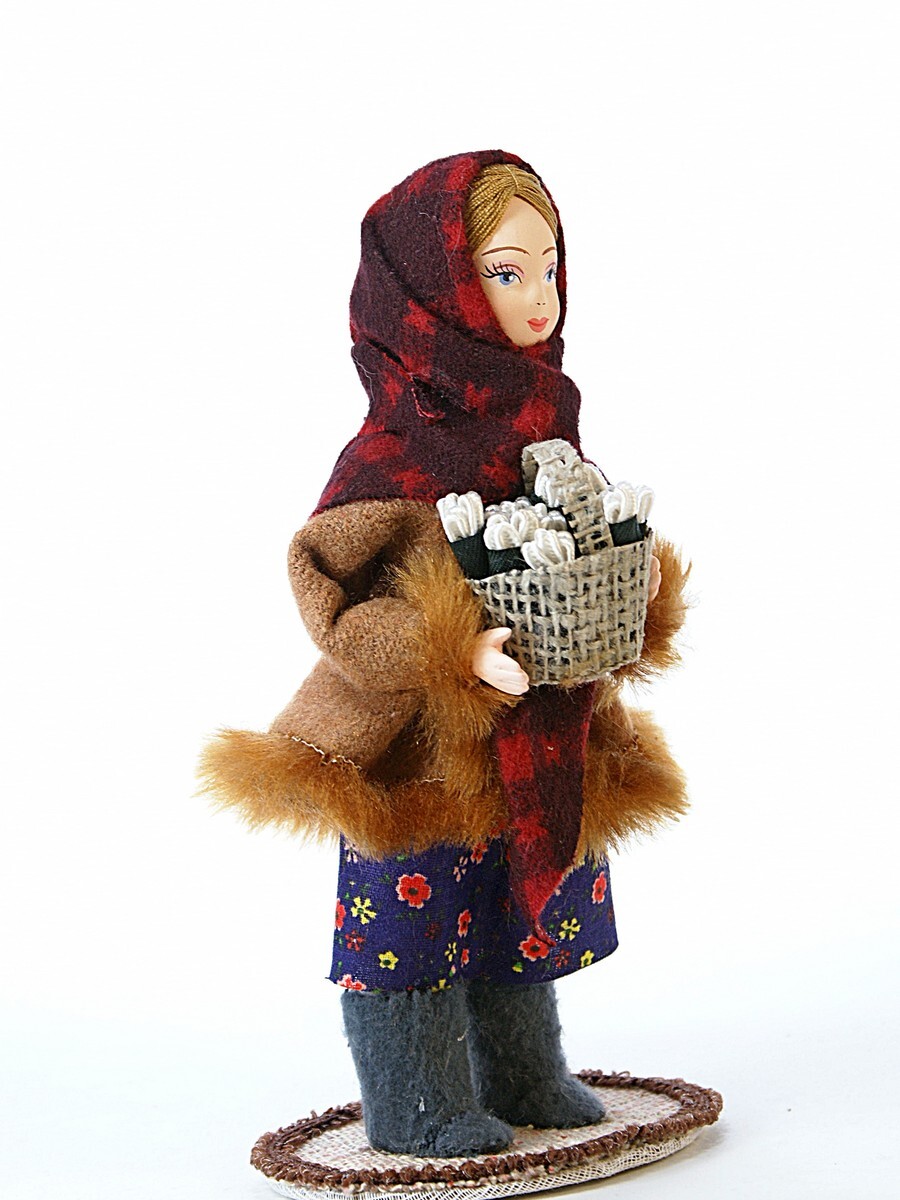 Сувенирная фарфоровая кукла ручной работы Девочка с корзиной подснежников по мотивам сказки С. Я. Маршака “12 месяцев”