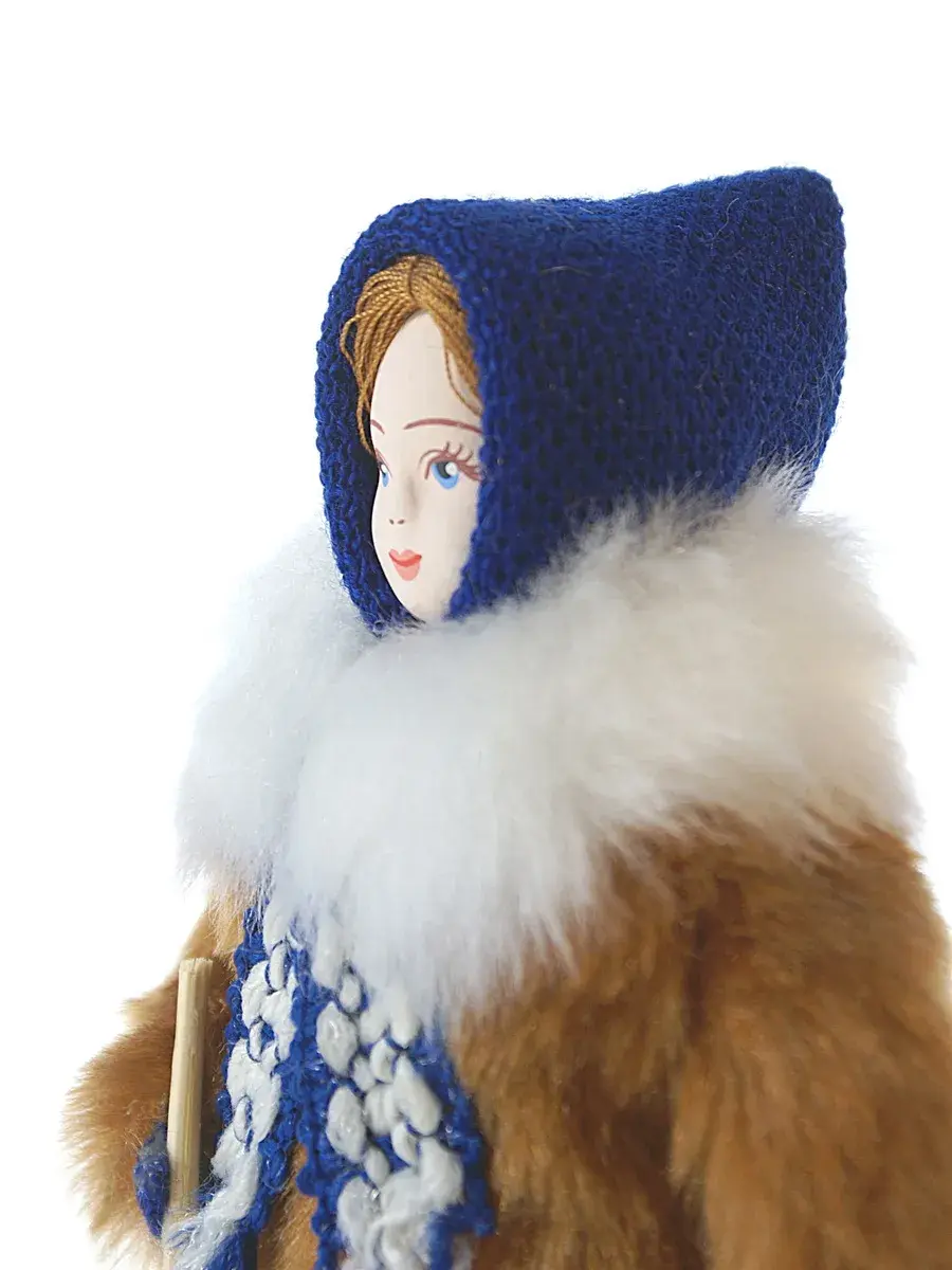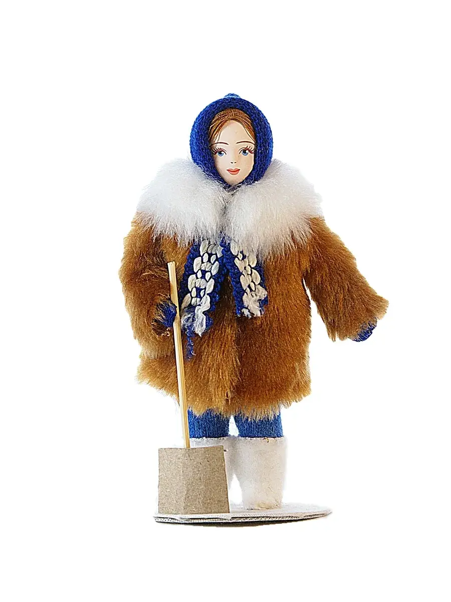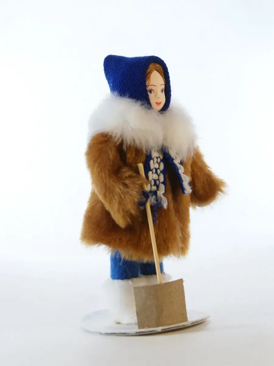 Сувенирная кукла ручной работы Девочка в зимней одежде с лопаткой, 1970-80-е гг. Россия., СССР.