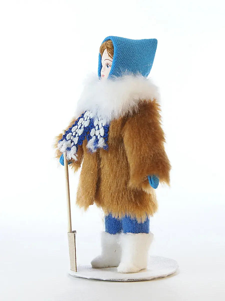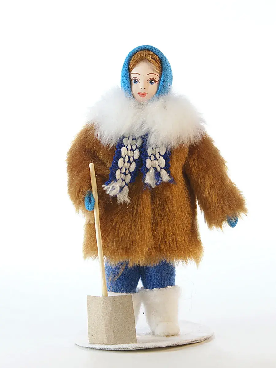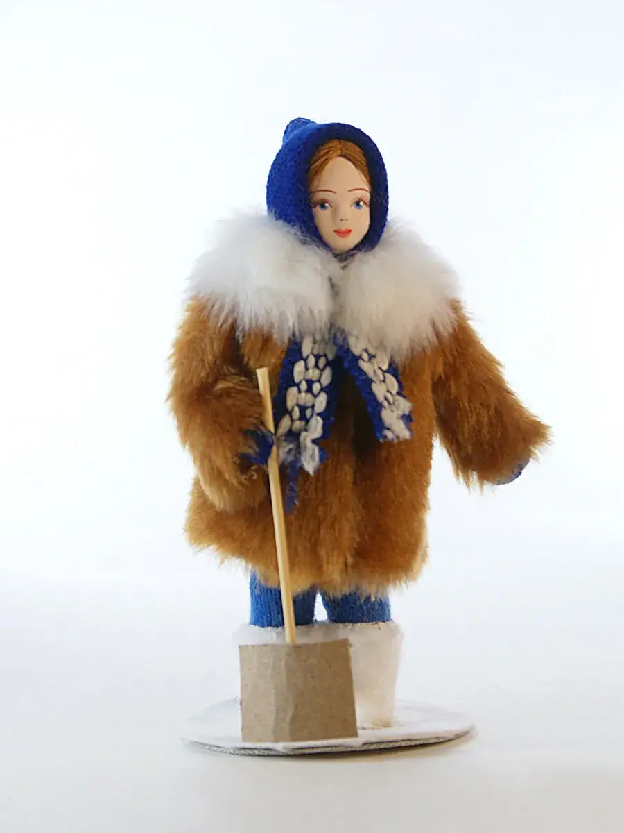 Сувенирная кукла ручной работы Девочка в зимней одежде с лопаткой, 1970-80-е гг. Россия., СССР.