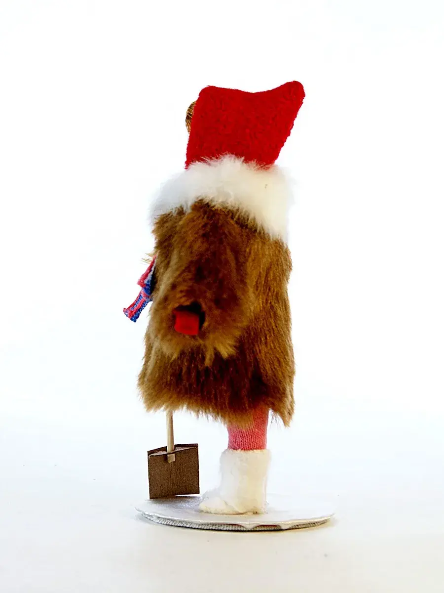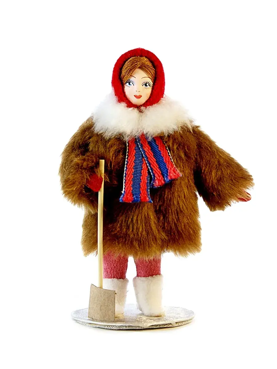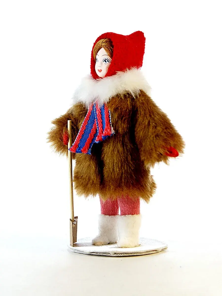 Сувенирная кукла ручной работы Девочка в зимней одежде с лопаткой, 1970-80-е гг. Россия., СССР.