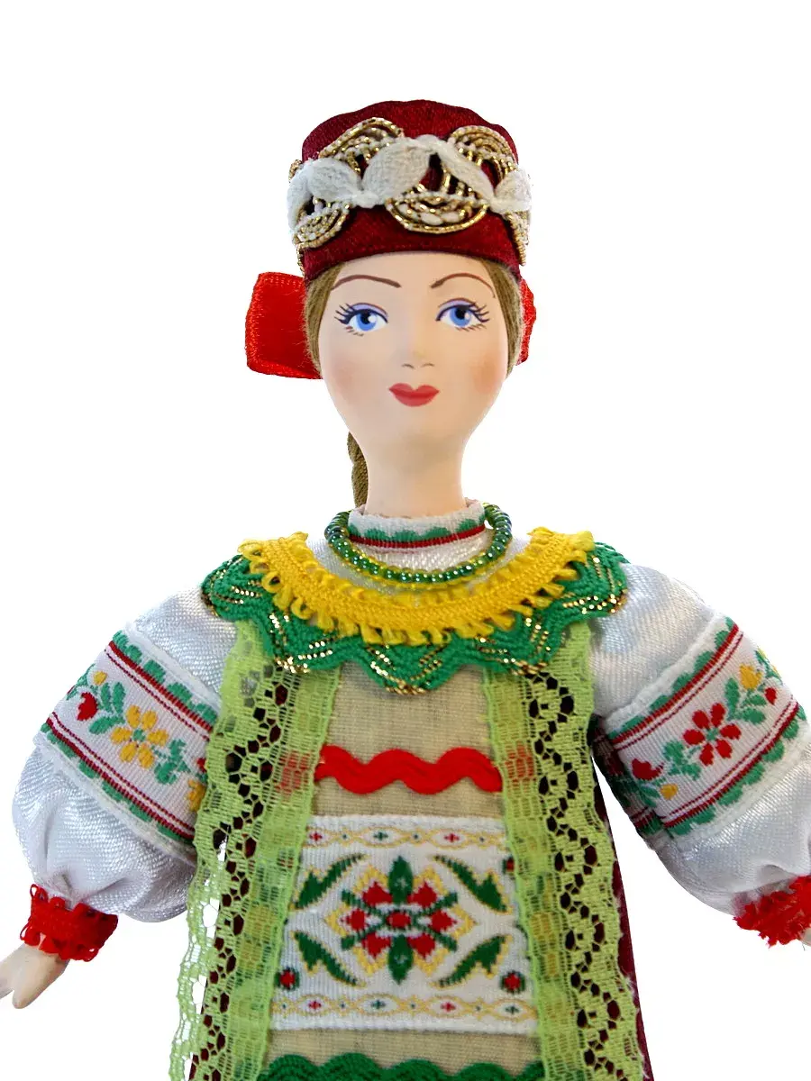 Кукла фарфоровая сувенирная коллекционная девушка в праздничном костюме Юга России. Для подарка, украшения интерьера, в коллекцию.
