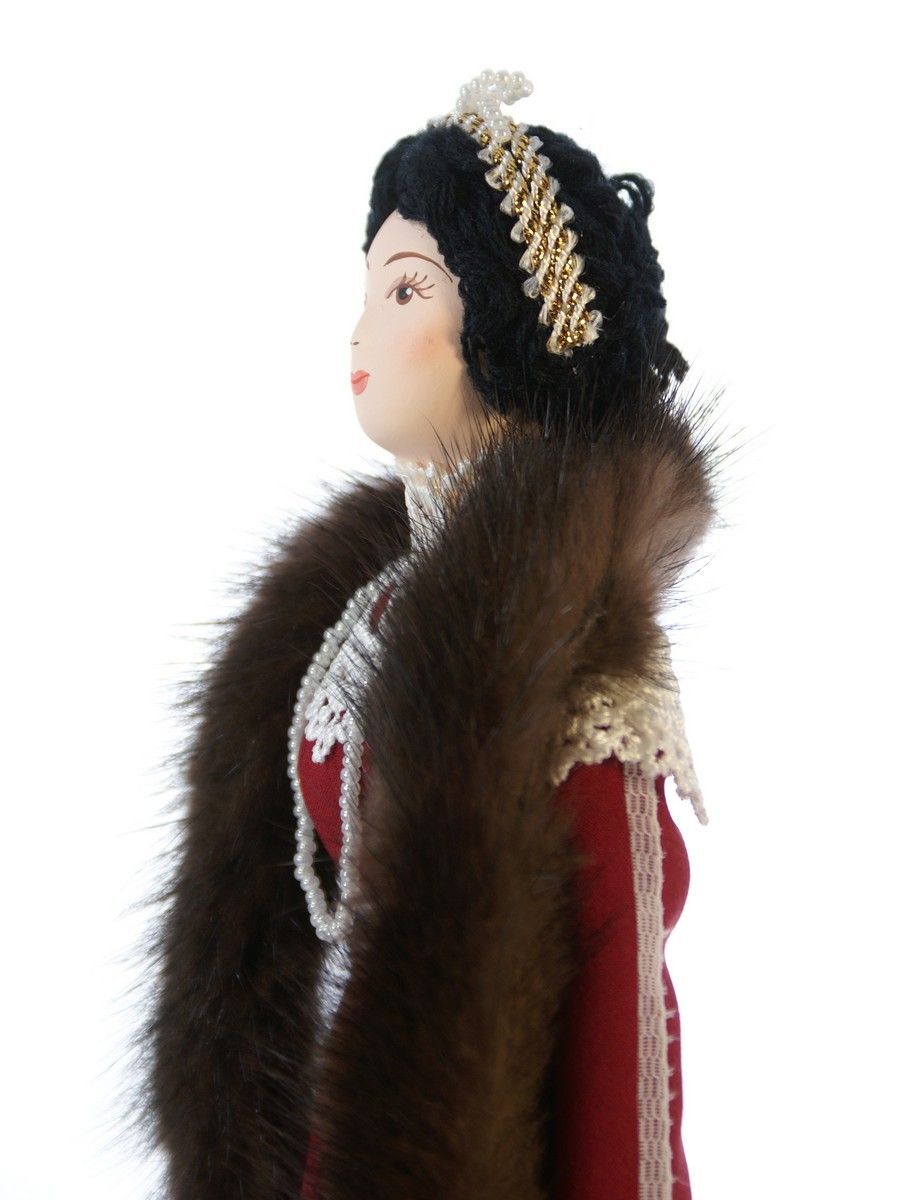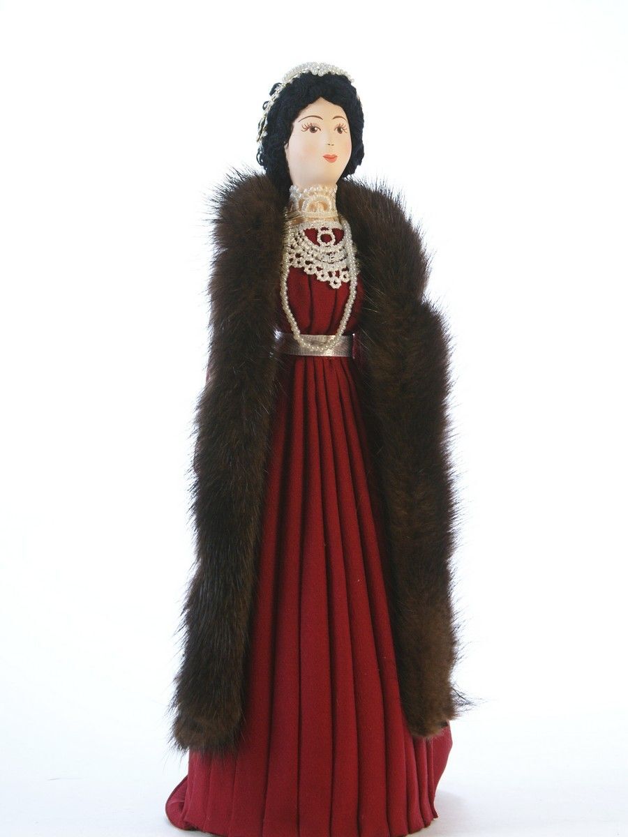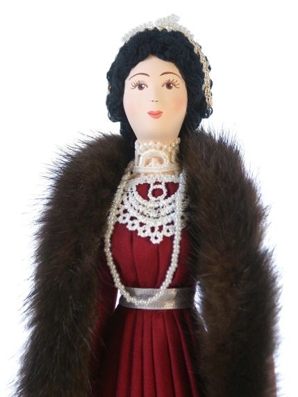 Кукла сувенирная ручной работы в светском историческом костюме начала 20 века в стиле модерн. Петербурженка в вечернем туалете с норковым манто.