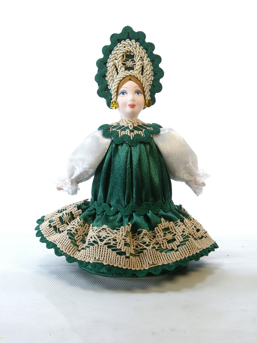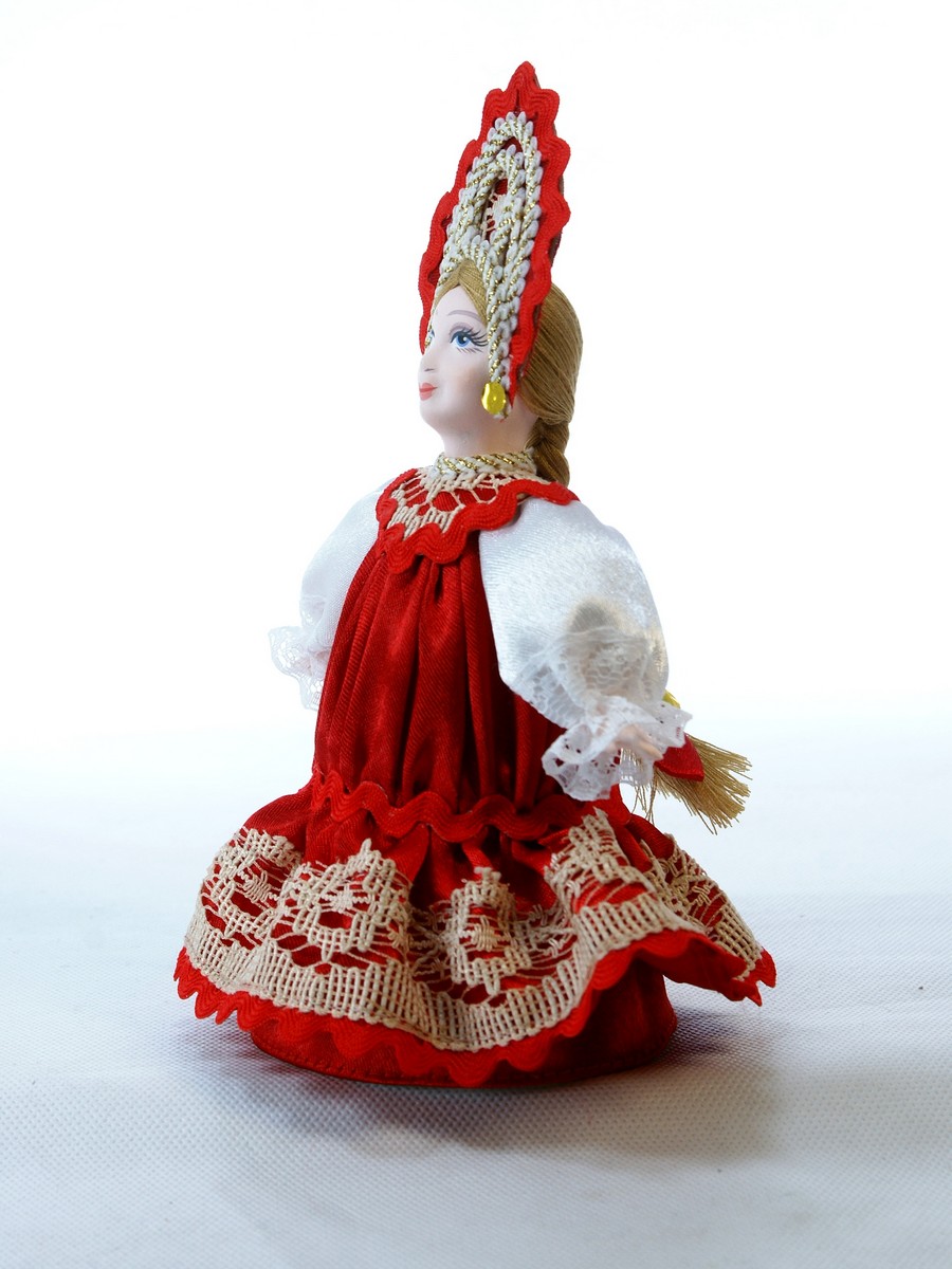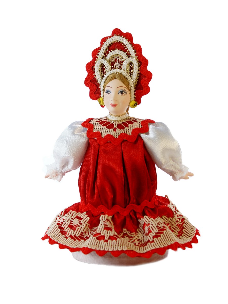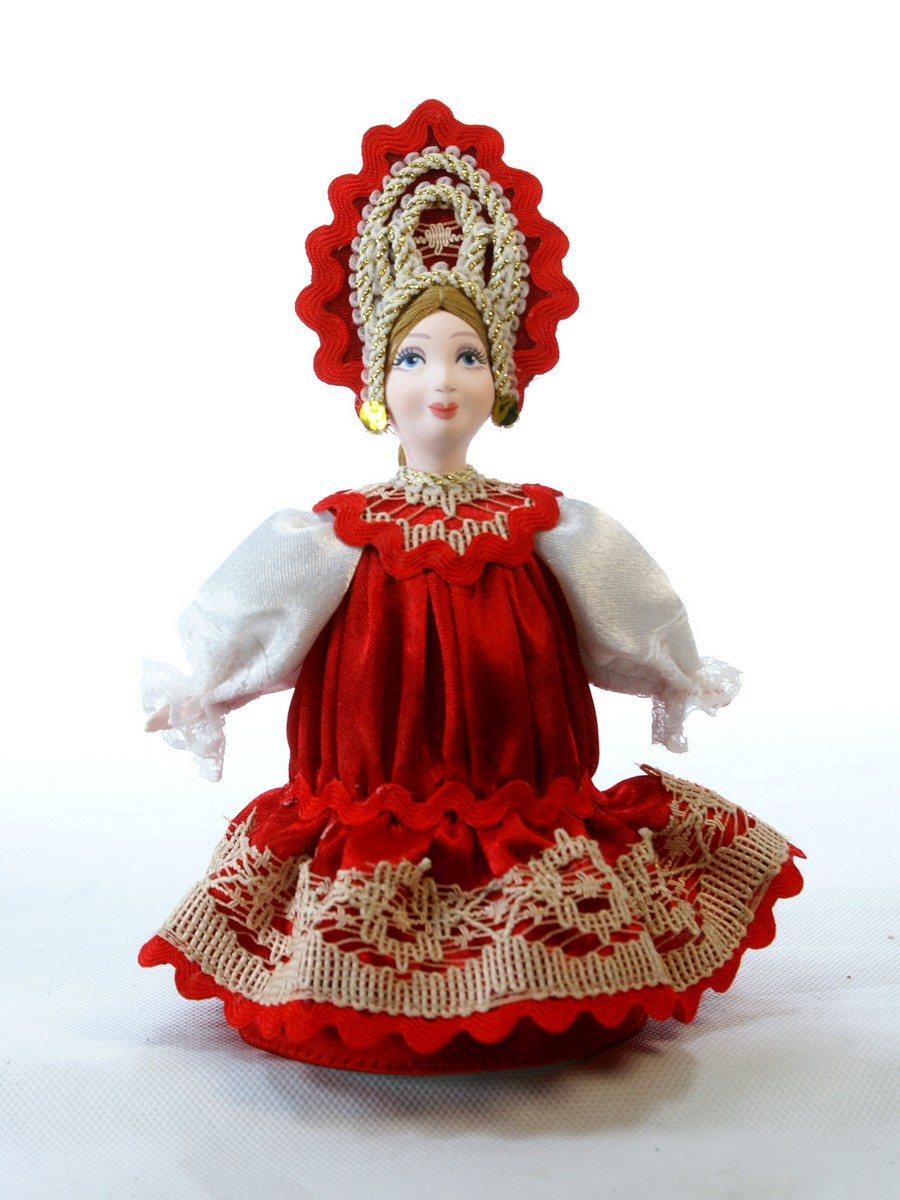 Кукла Потешного промысла ручной работы Прасковья в русском костюме. Для подарка, украшения интерьера, в коллекцию. Материал: фарфор, текстиль. Высота 18 см. Артикул 0340.\n\n