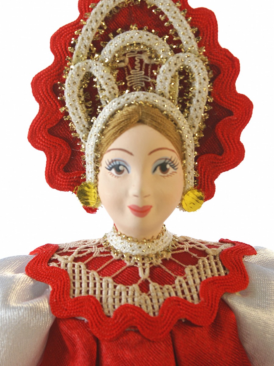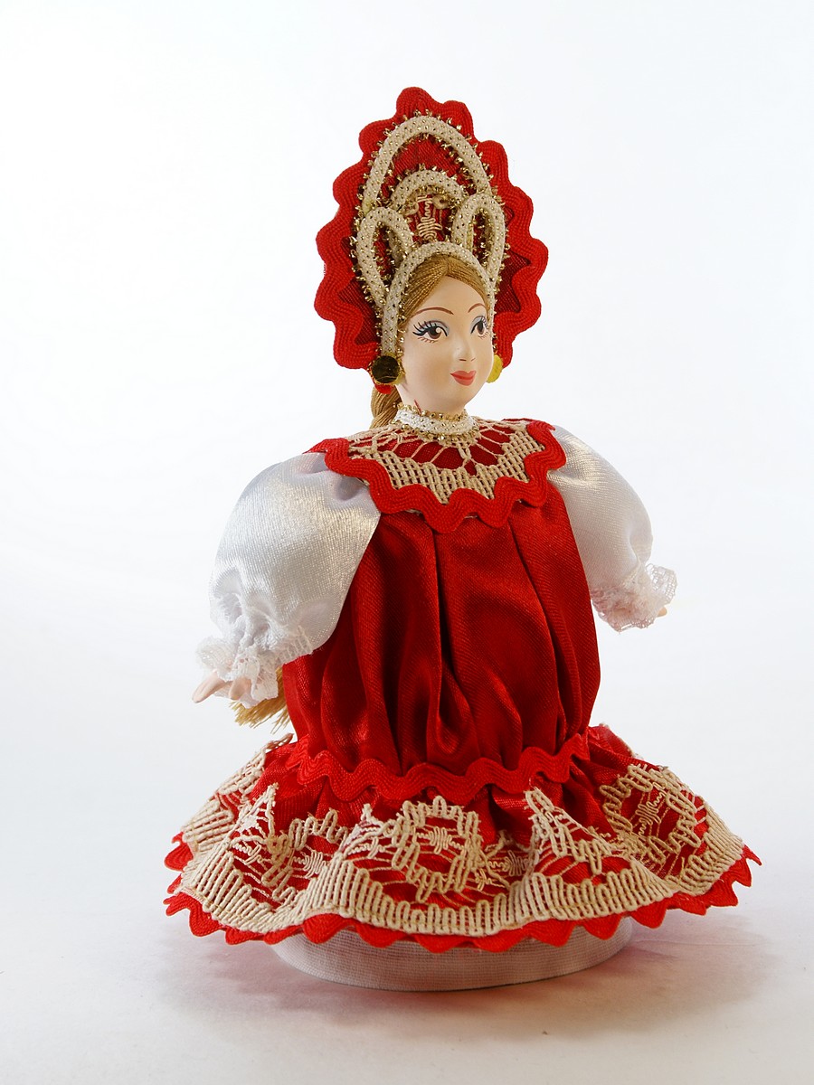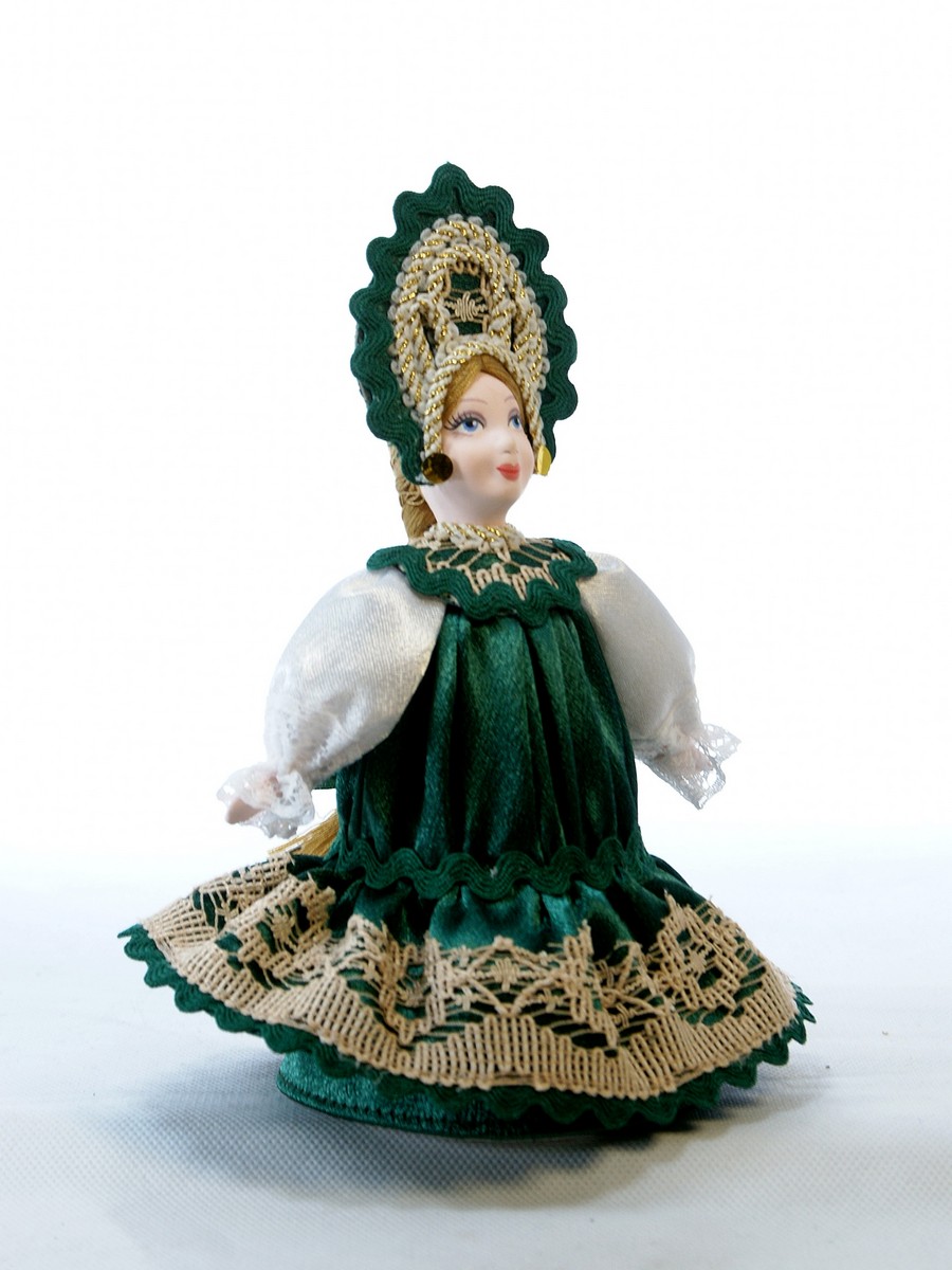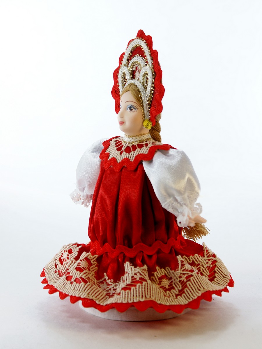 Кукла Потешного промысла ручной работы Прасковья в русском костюме. Для подарка, украшения интерьера, в коллекцию. Материал: фарфор, текстиль. Высота 18 см. Артикул 0340.\n\n
