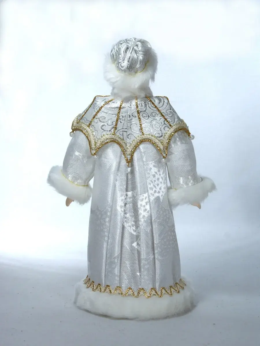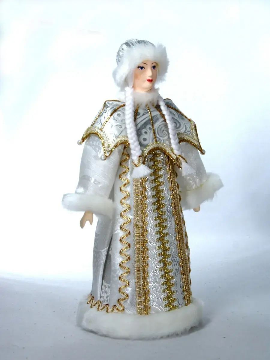Уникальное творение петербургских мастеров — коллекционная кукла Снегурочка, воплотившая образ самой зимней красавицы в изысканном наряде с пелериной, украшенной «жемчугом». Созданная в традициях «Потешного промысла», эта статуэтка станет настоящим украшением вашего новогоднего интерьера.