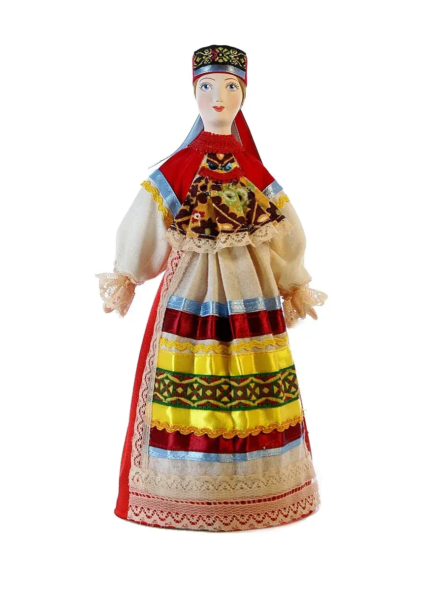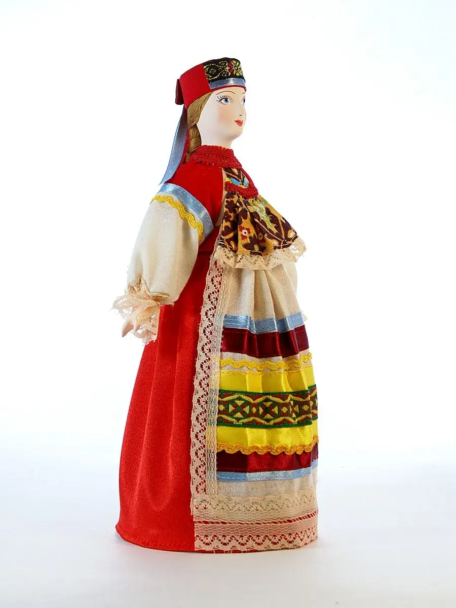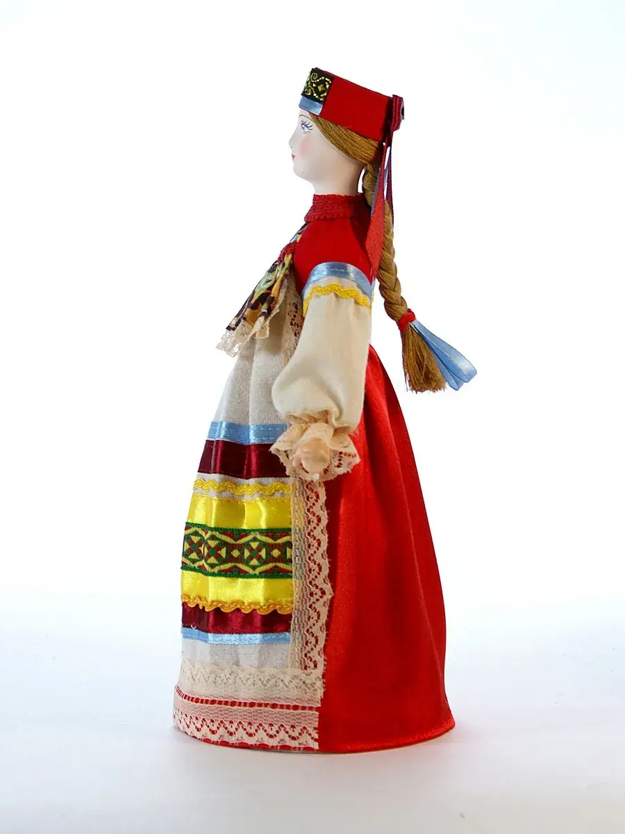 Фарфоровая кукла ручной работы в традиционном девичьем праздничном костюме, Россия, Тамбовская губерния, из коллекции "Русский костюм".