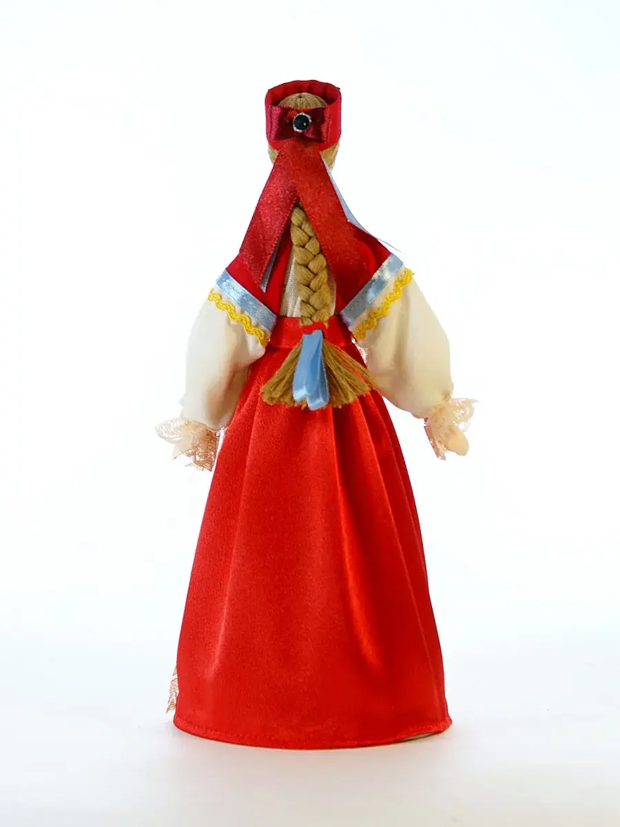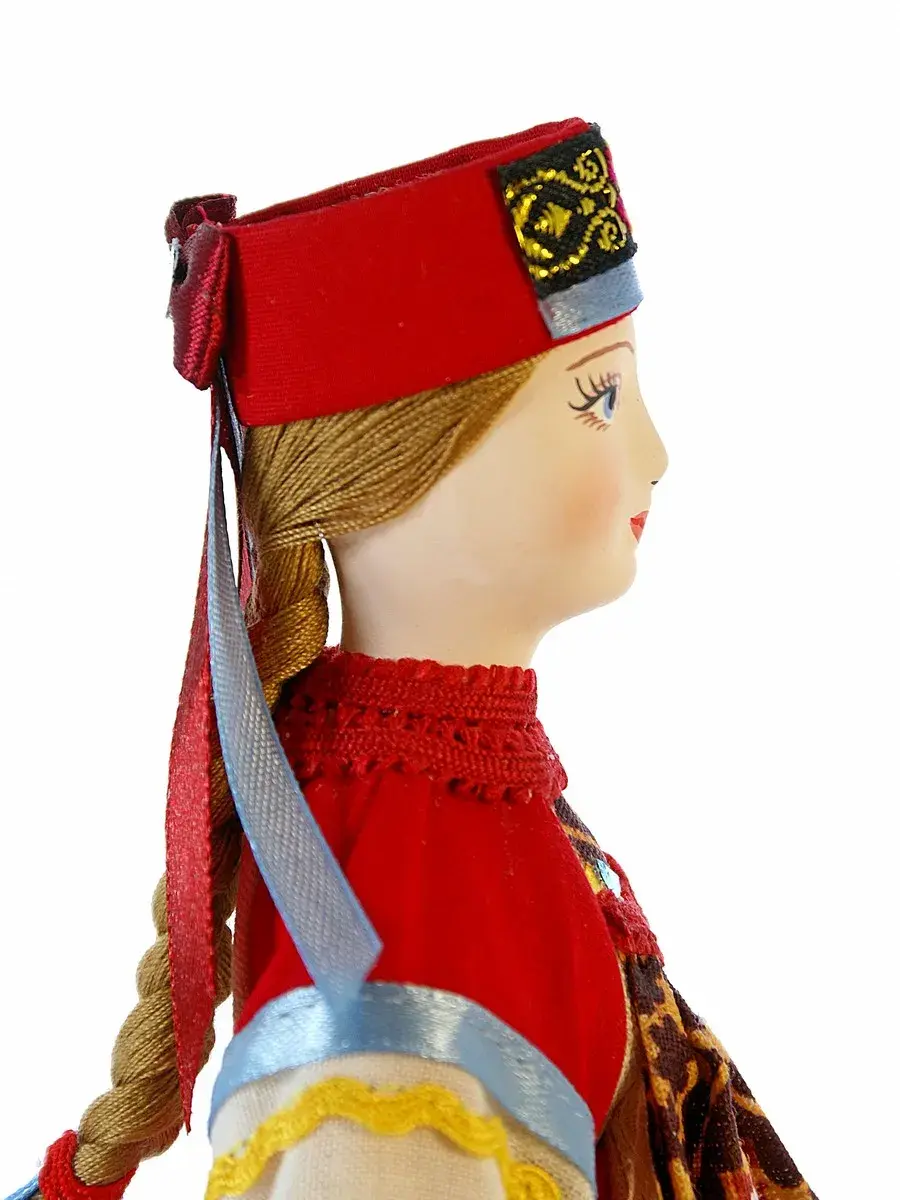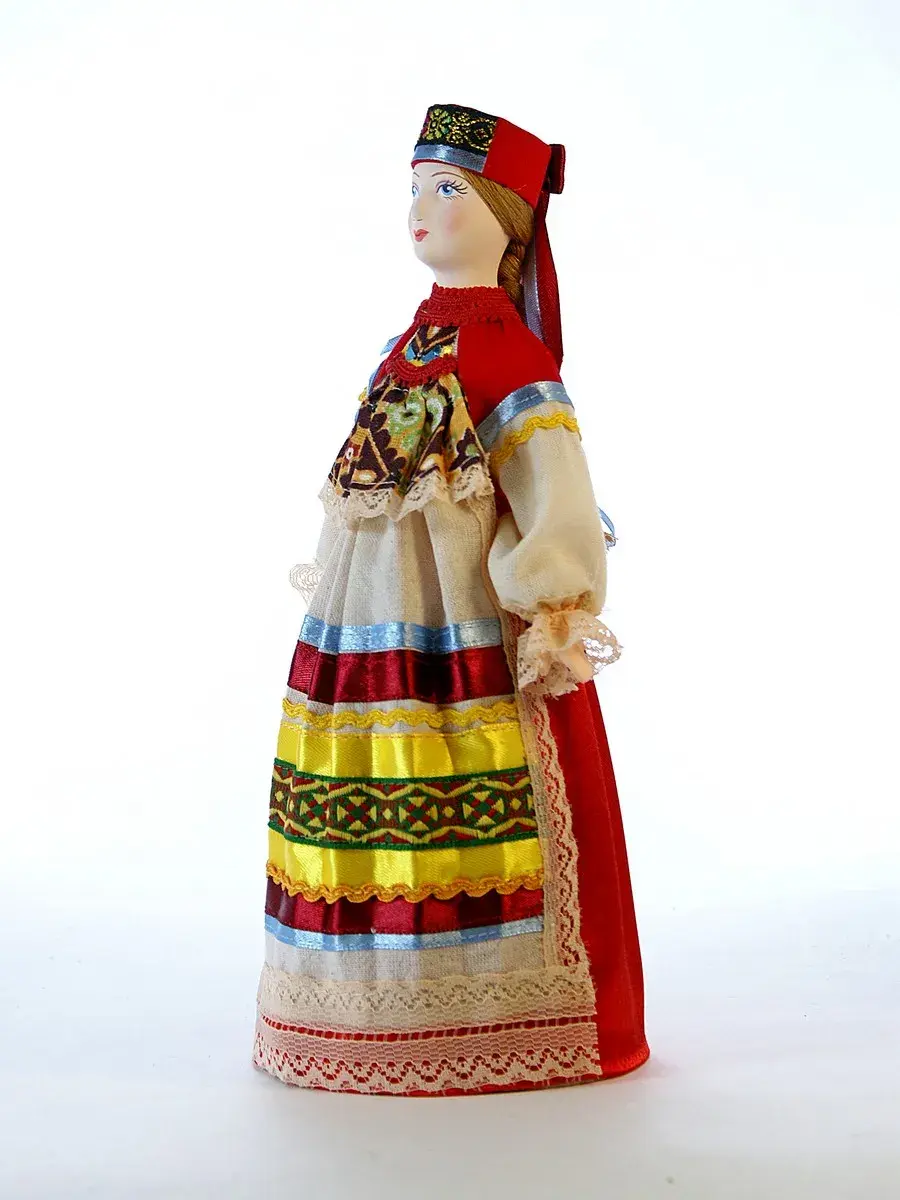 Фарфоровая кукла ручной работы в традиционном девичьем праздничном костюме, Россия, Тамбовская губерния, из коллекции "Русский костюм".