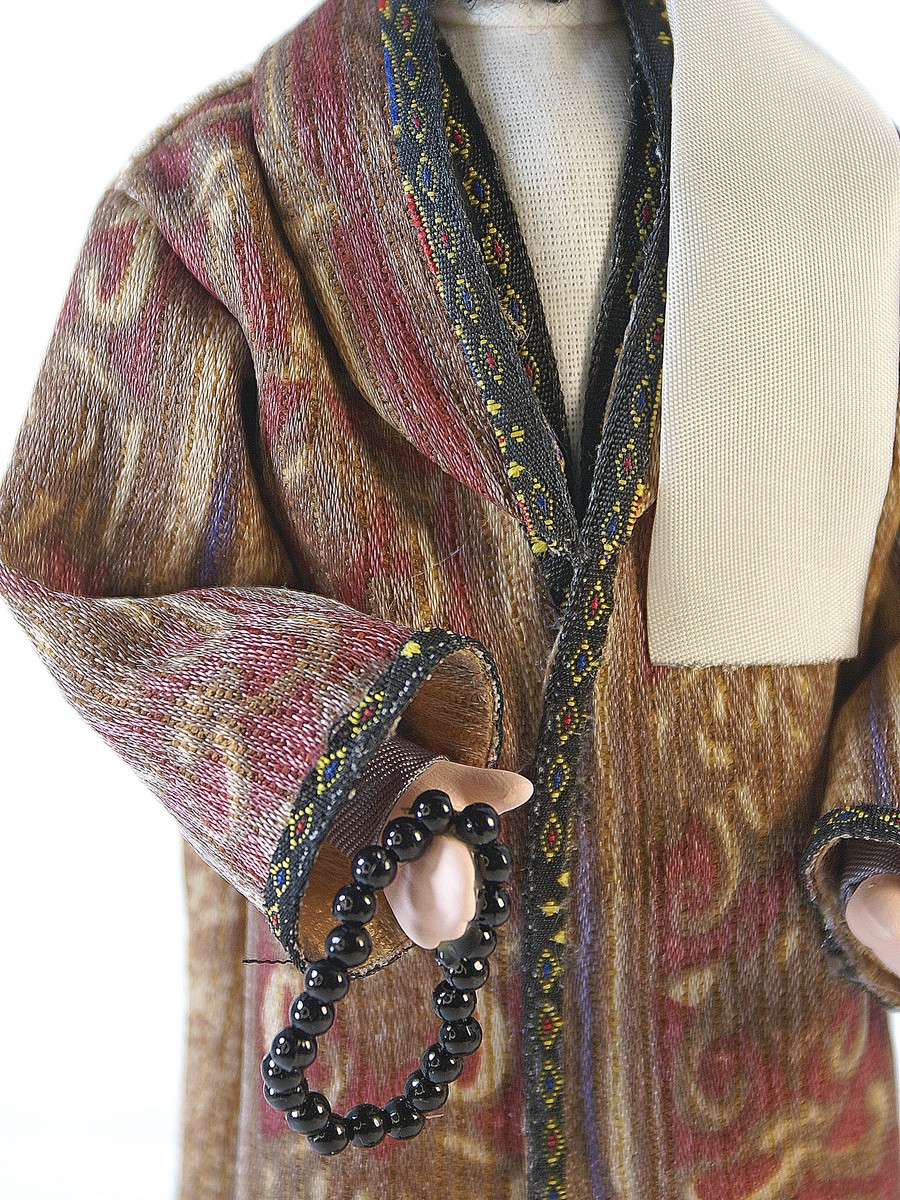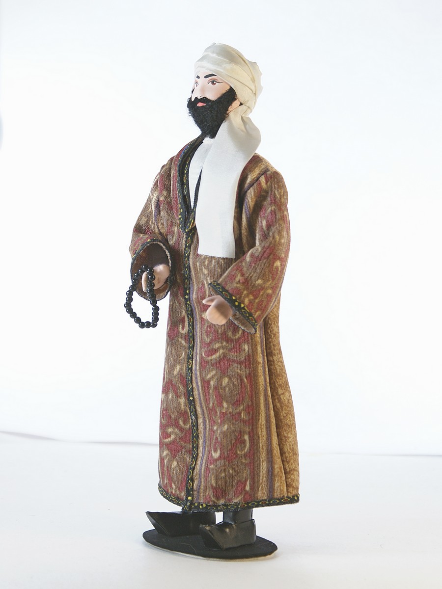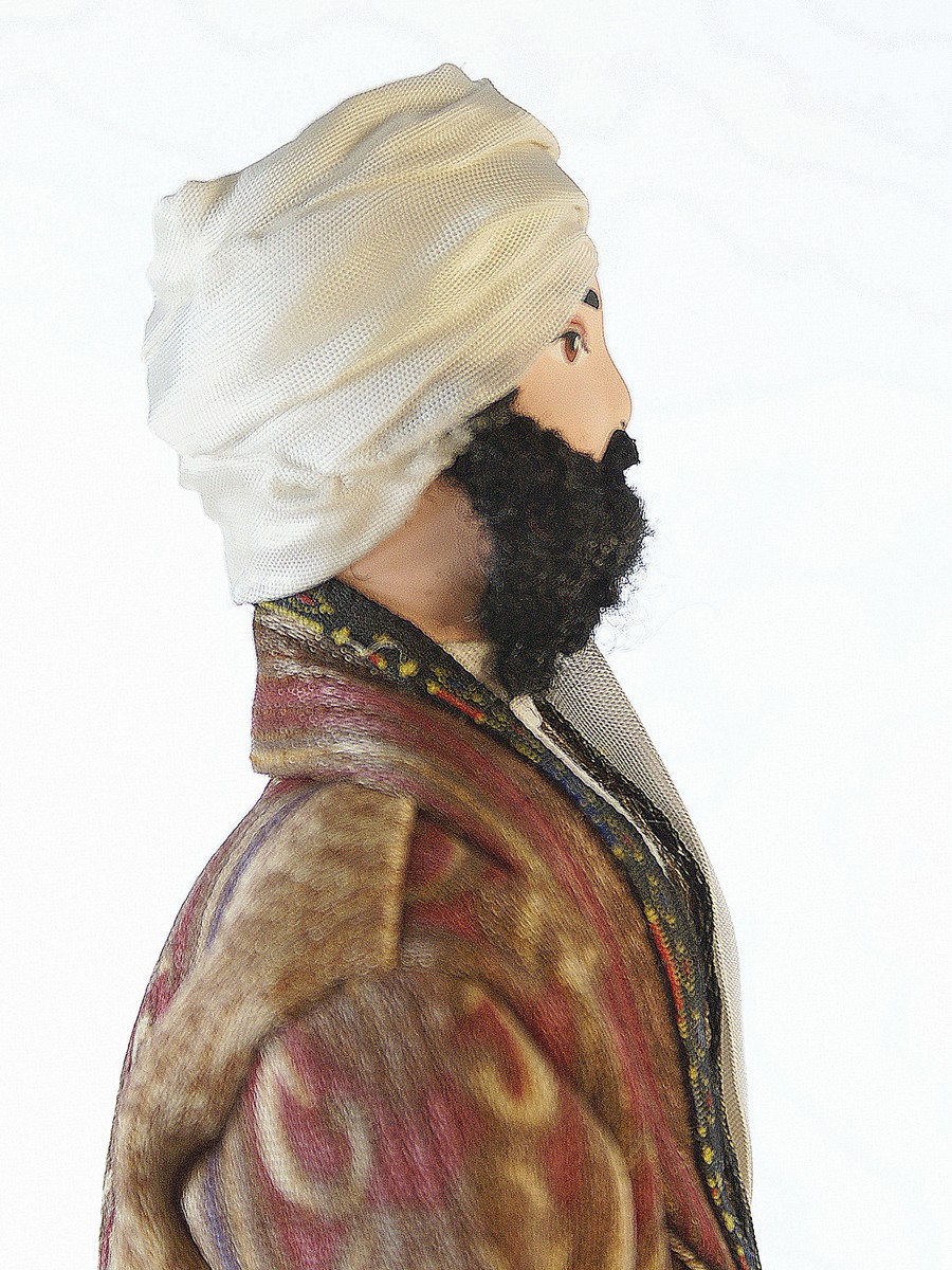 Кукла Потешного промысла на подставке - Узбек в традиционном костюме. Материал фарфор, текстиль. Высота 26 см. Артикул 0756\n\nДля подарка, украшения интерьера, в коллекцию.\nКукла создана в Санкт-Петербурге профессиональными мастерами и художниками из качественных, безопасных материалов российского производства.\n\nГолова, торс, руки и ноги куклы выполнены из фарфора в собственной керамической мастерской (горячий обжиг при температуре +1200 градусов Цельсия), расписана акриловыми/темперными красками.\n\nВысота около 26 см, костюм текстильный (тесьма, кружево) несъемный, подставка несъемная.\nПоставляется в крафтовой транспортировочной коробке с фирменным логотипом, зип-пакете и пузырчатой плёнке.\n\n