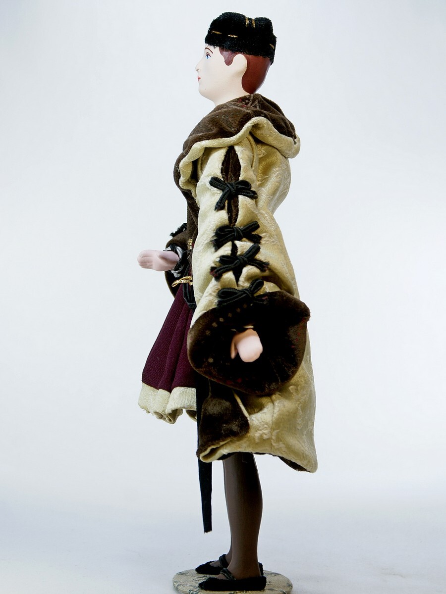 Фарфоровая коллекционная малотиражная кукла Немец в придворном костюме. Фарфор, текстиль. Высота 28 см. Конструкция: статуэтка на подставке. Высота 28 см. Тираж 10шт. Модель №1548