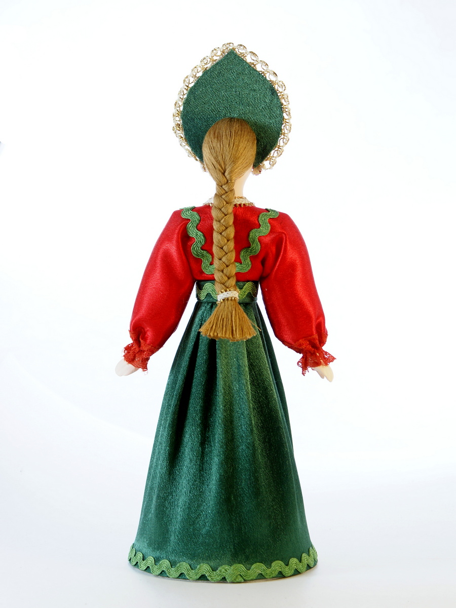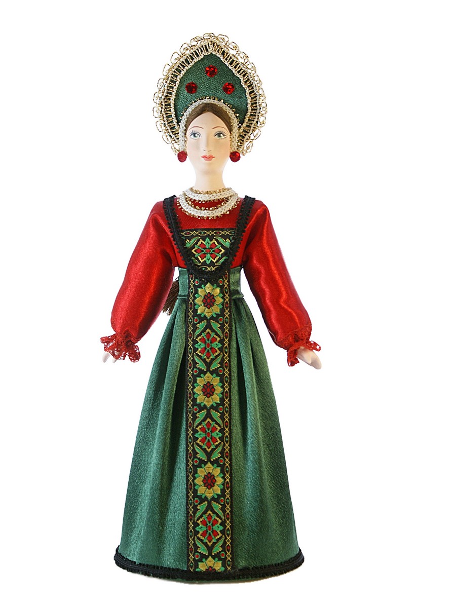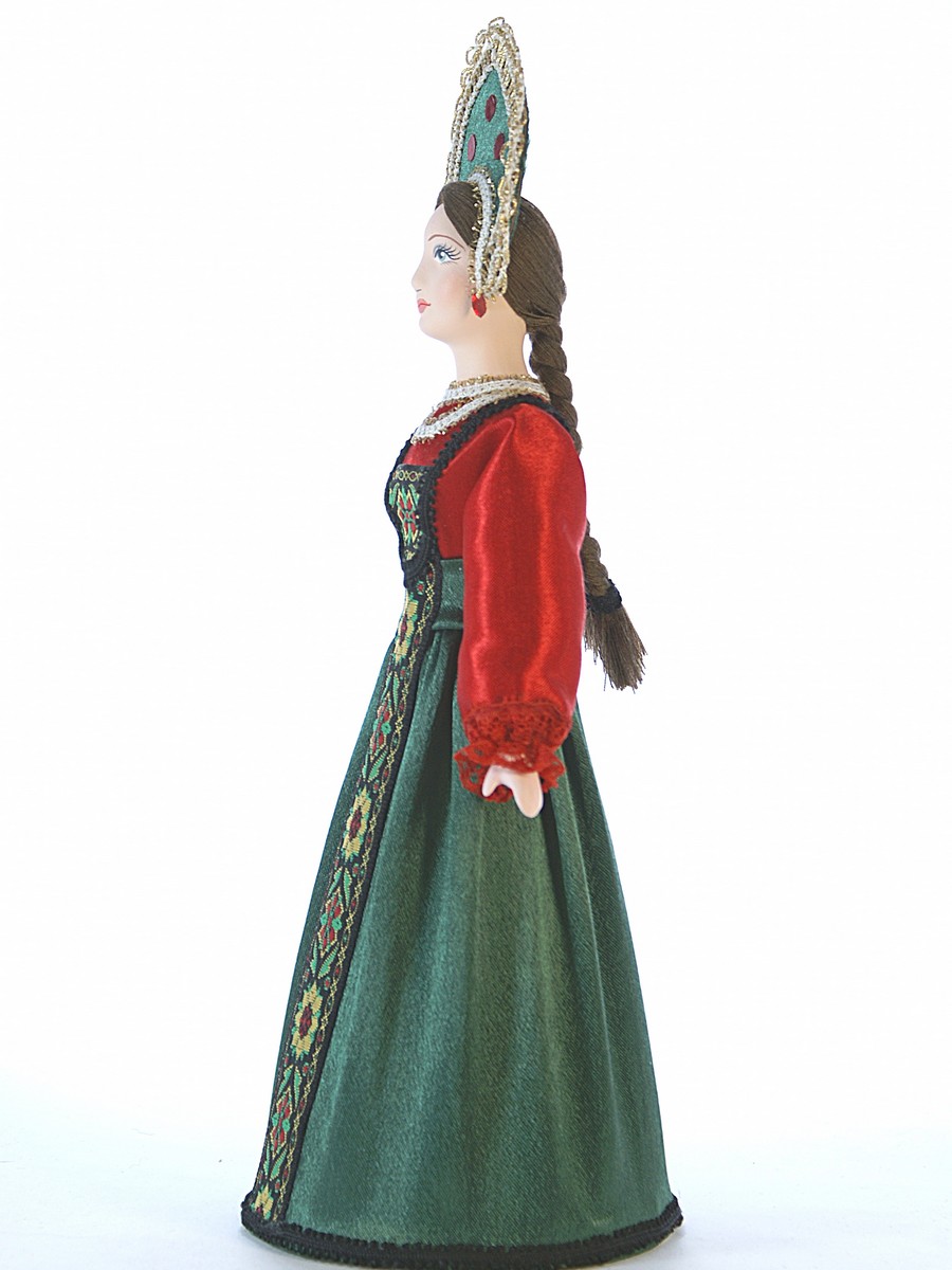 Кукла Потешного промысла. Костромская губерния. Россия. Девичий праздничный костюм. Материал фарфор, текстиль. Высота 29 см. Артикул 0337.