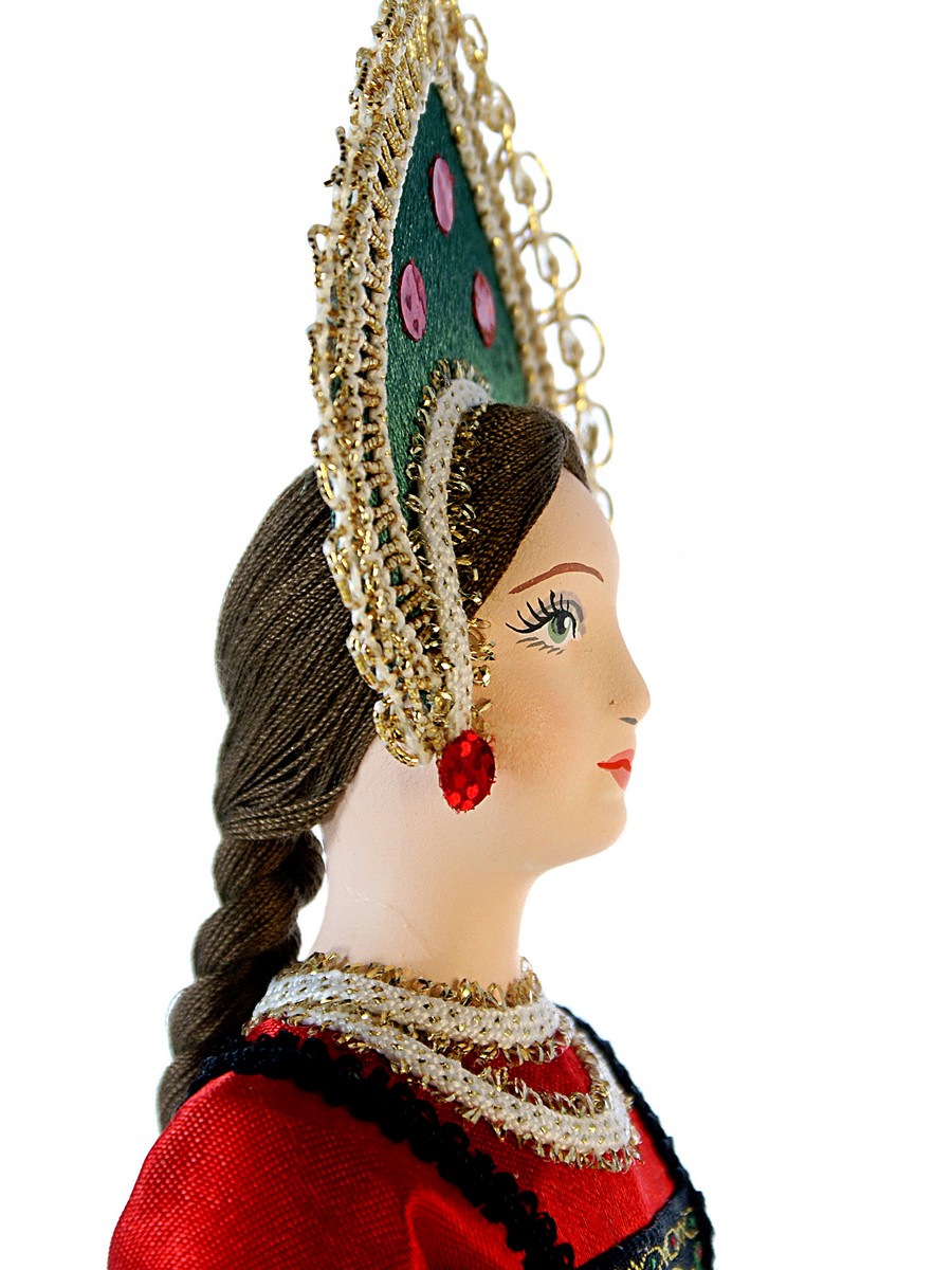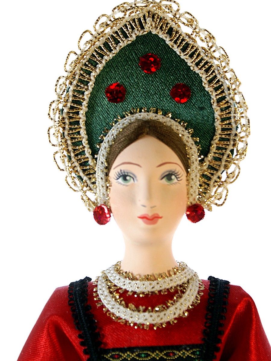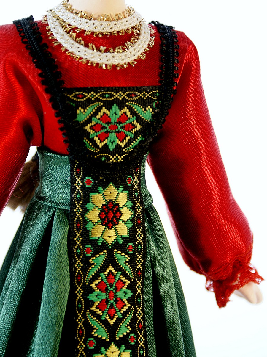 Кукла Потешного промысла. Костромская губерния. Россия. Девичий праздничный костюм. Материал фарфор, текстиль. Высота 29 см. Артикул 0337.