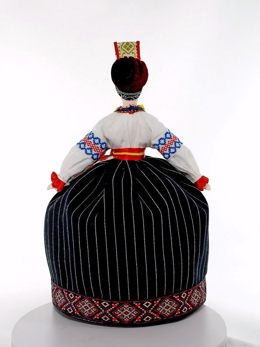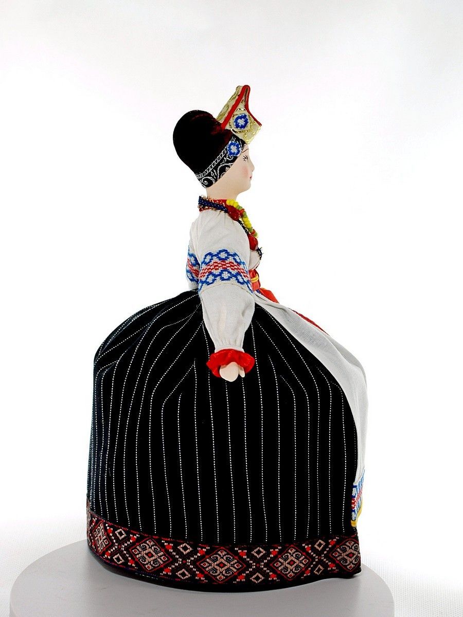 Кукла коллекционная - это уникальный предмет, который привлечет внимание всех ценителей антиквариата и коллекционирования. Она выполнена в народном, фольклорном стиле, что придает ей особый шарм и колорит. Фарфоровая статуэтка точно передает все основные детали одежды замужней женщины юга России, что делает ее еще более привлекательной для коллекционеров. Черный цвет в элементах наряда олицетворяет плодородие русской земли. Эта фигурка станет отличным дополнением коллекции или прекрасным сувениром и подарком для вас и ваших близких, друзей. Она создана с большой любовью и тщательностью, олицетворяет красоту и яркость воронежских традиций.