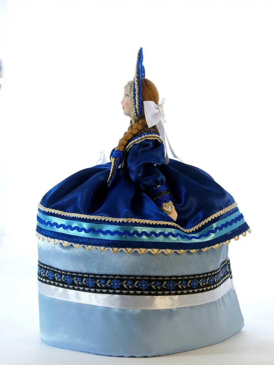 Материал - фарфор, текстиль. Высота 30 см. Диаметр юбки 18-19 см.