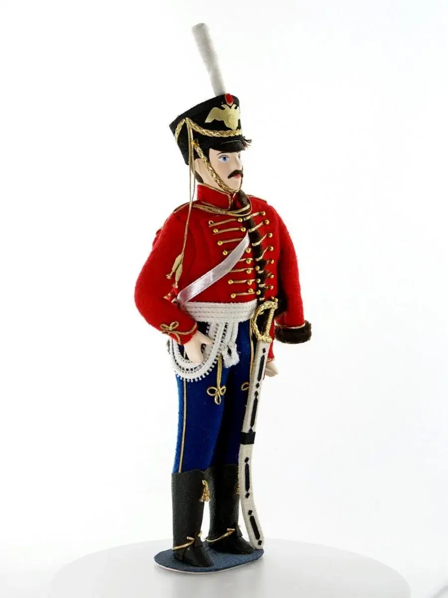 Кукла фарфоровая Гусар в мундире лейб-гвардии гусарского полка 1812 г. Россия, на подставке.
