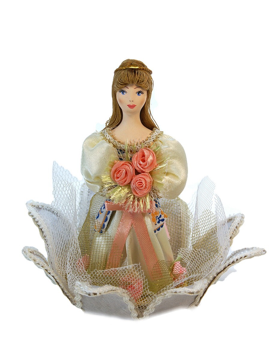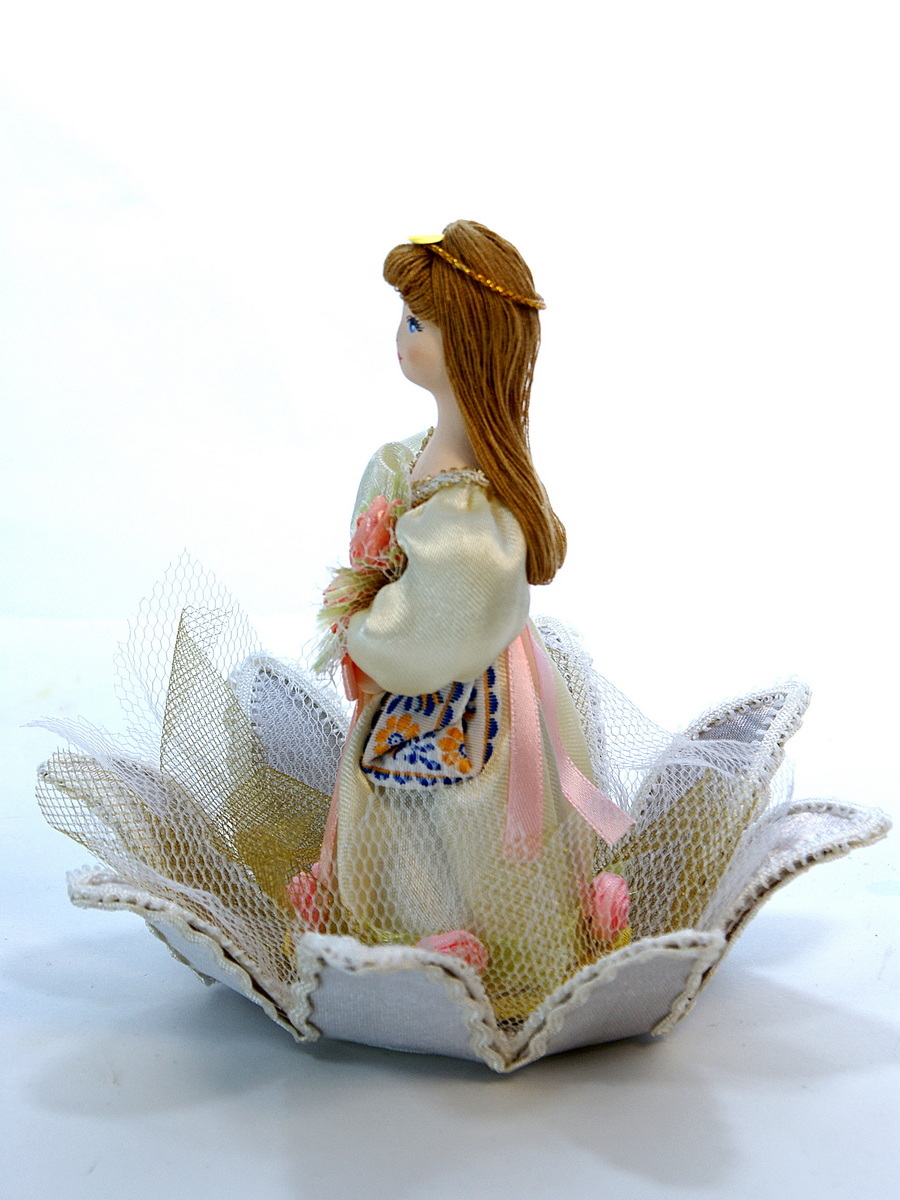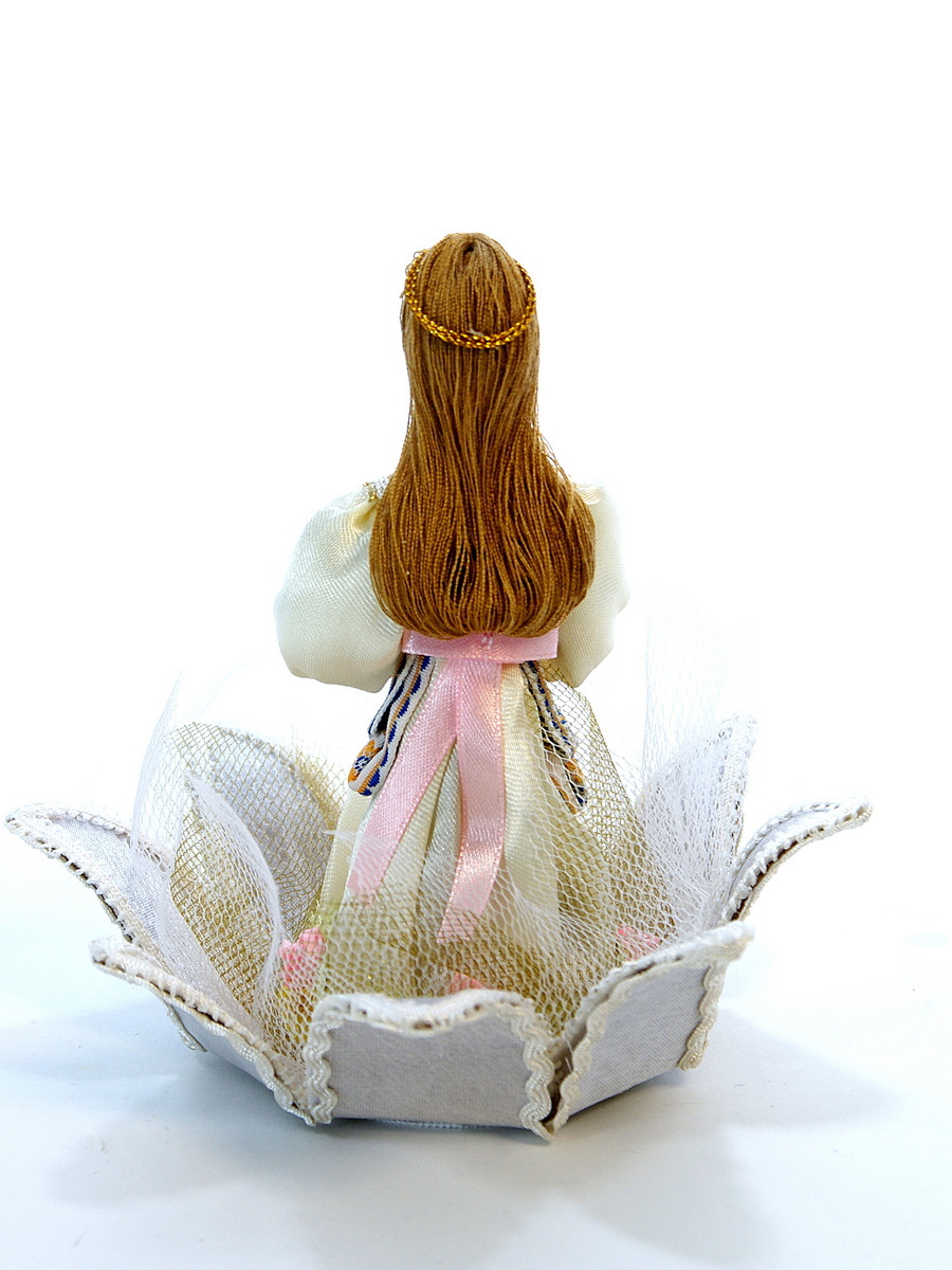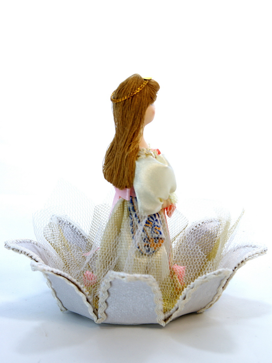 Кукла Потешного промысла Дюймовочка на лилии. Материал фарфор, текстиль. Высота 13 см. Артикул 0580.