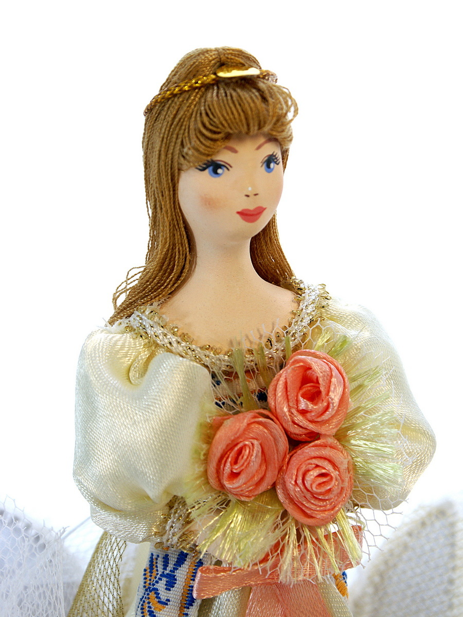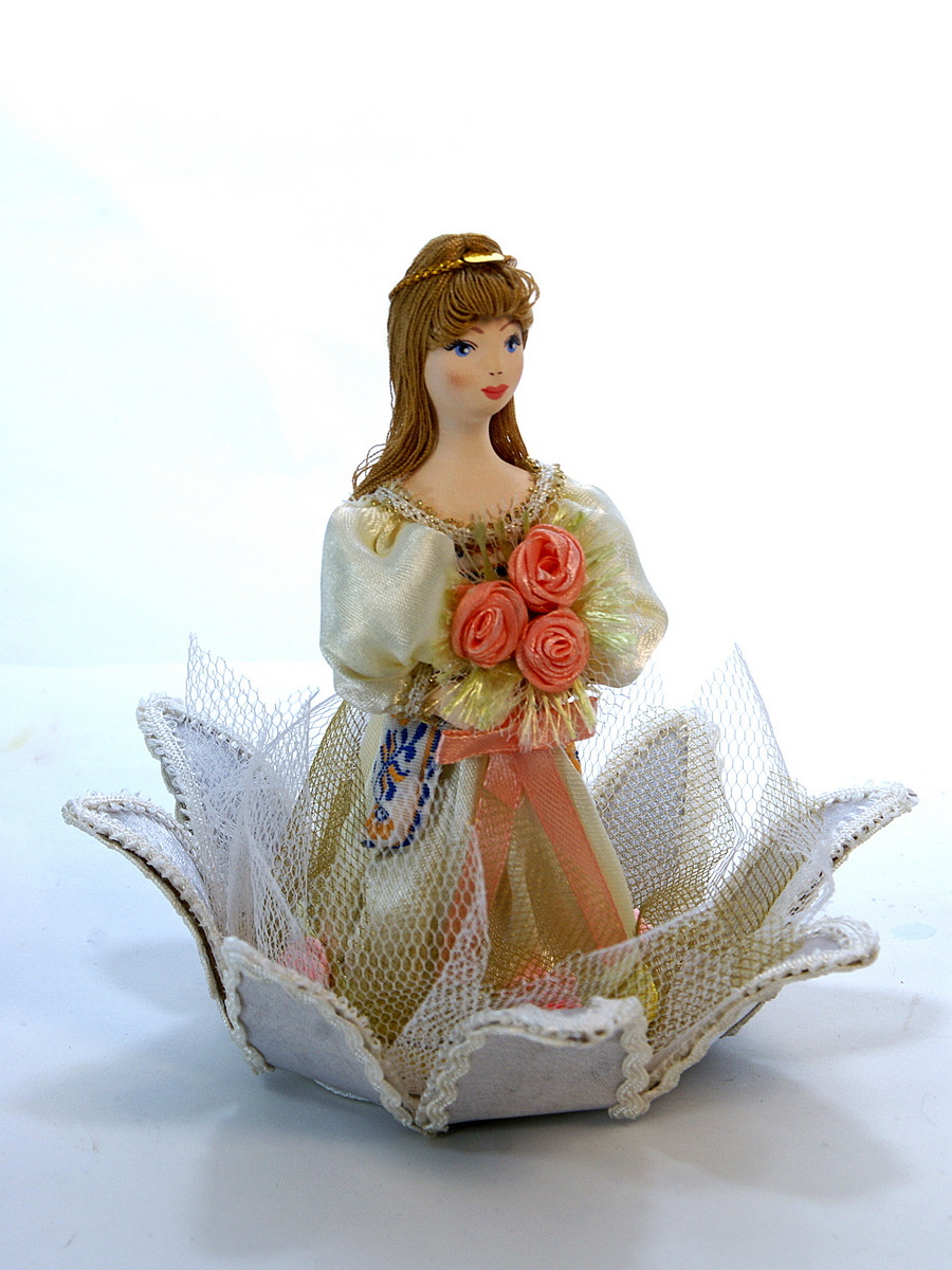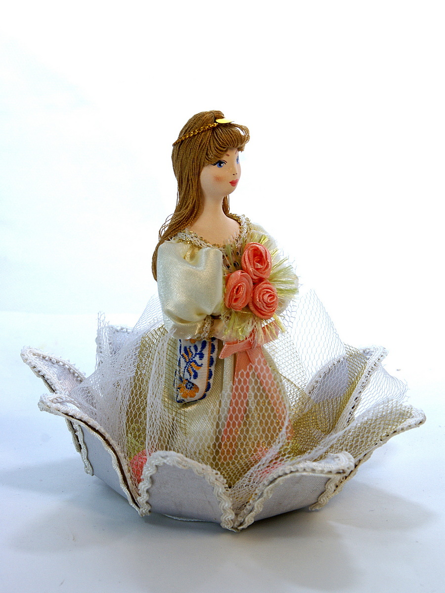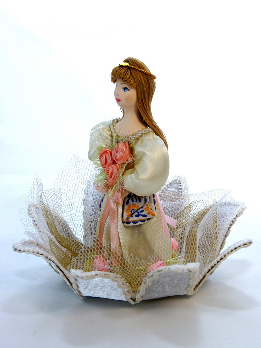 Кукла Потешного промысла Дюймовочка на лилии. Материал фарфор, текстиль. Высота 13 см. Артикул 0580.