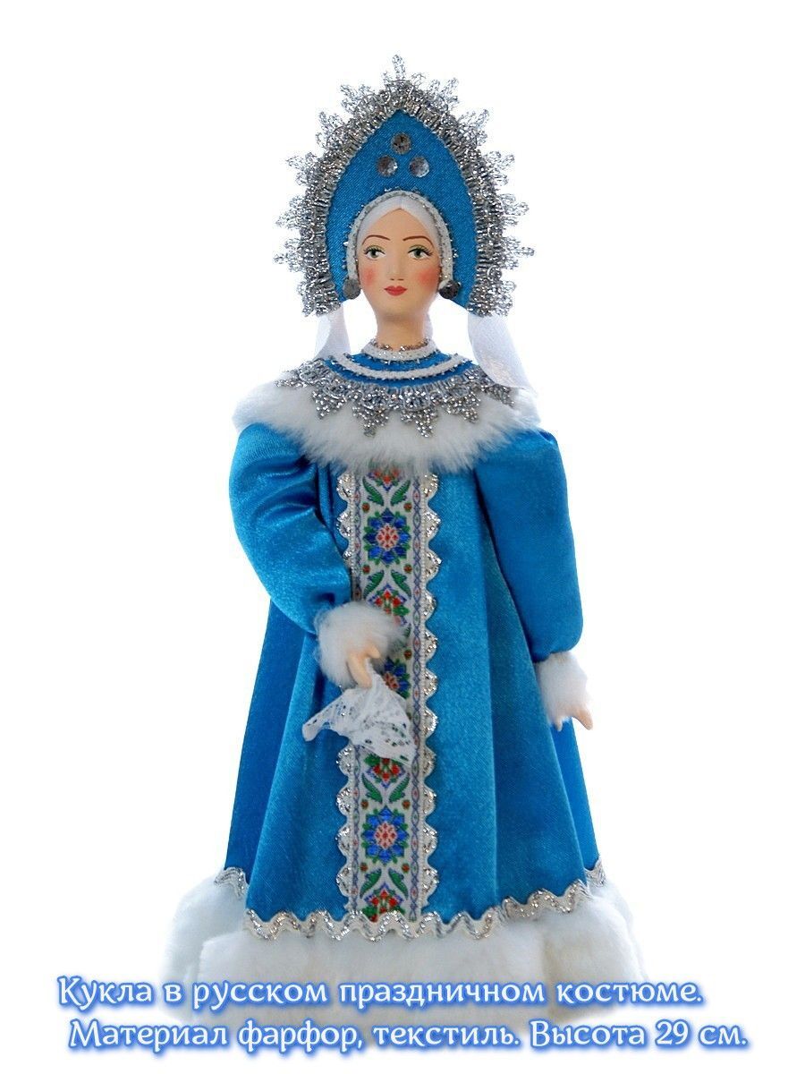 Фарфоровая кукла коллекционная Снегурочка в русском костюме. Новогодняя игрушка под ёлку ручной работы. Сувенирная кукла ручной работы из коллекции "Новогодняя игрушка"