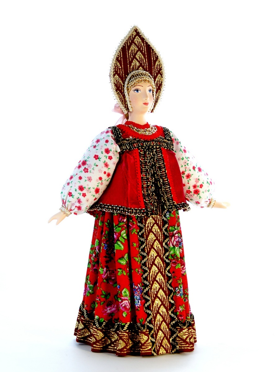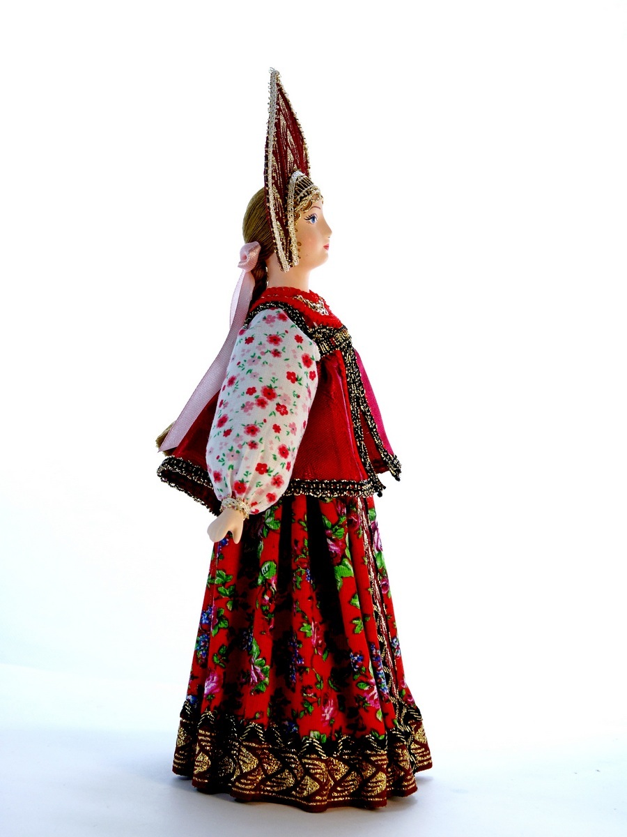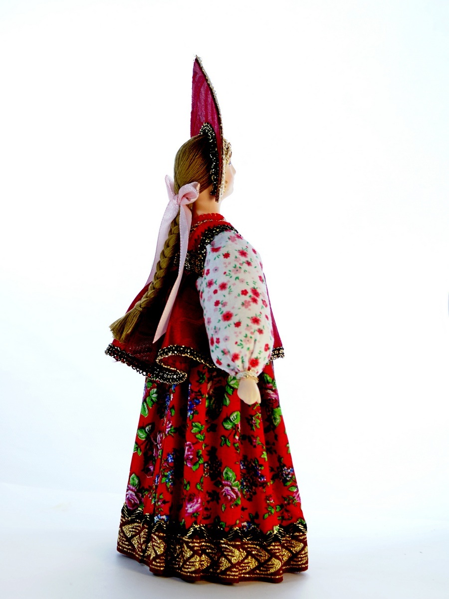 Кукла Потешного промысла Акулина в народном летнем костюме. Конец 18 – начало 19 века. Материал фарфор, текстиль. Высота 29 см. Артикул 0686.