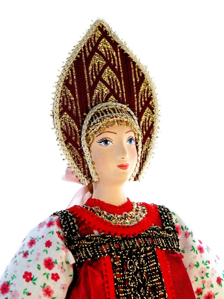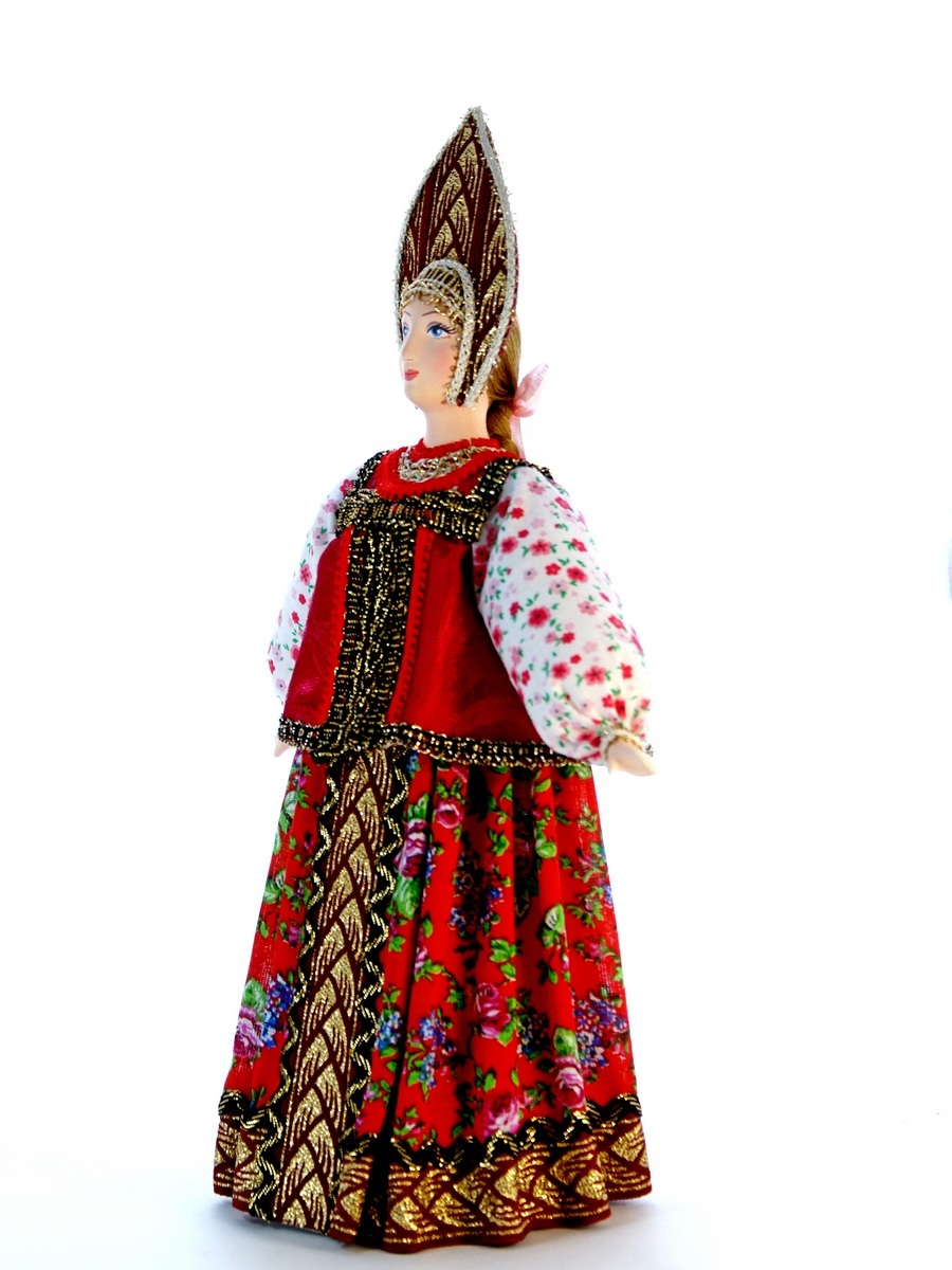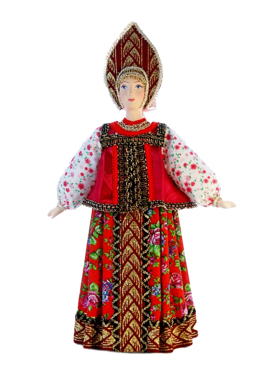 Кукла Потешного промысла Акулина в народном летнем костюме. Конец 18 – начало 19 века. Материал фарфор, текстиль. Высота 29 см. Артикул 0686.