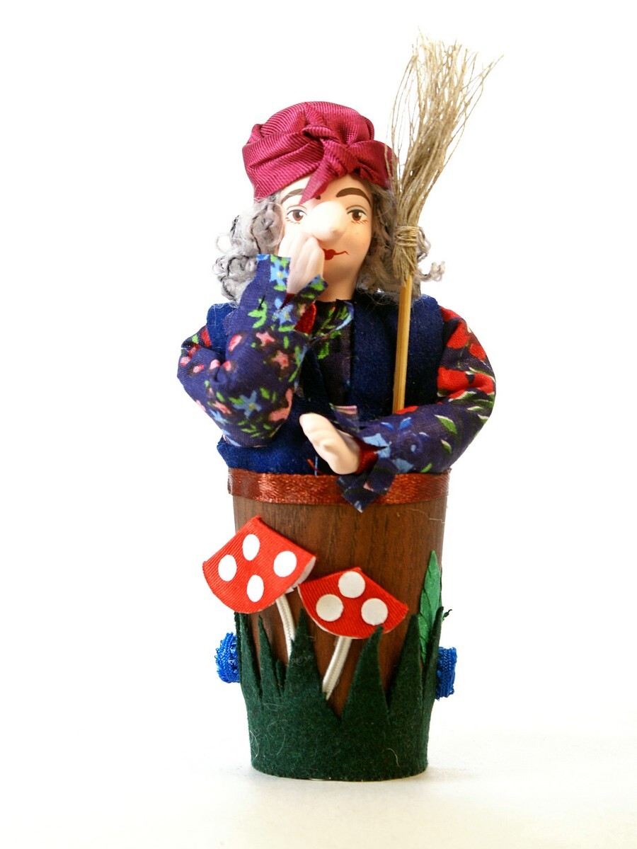 Кукла коллекционная Баба-Яга в ступе