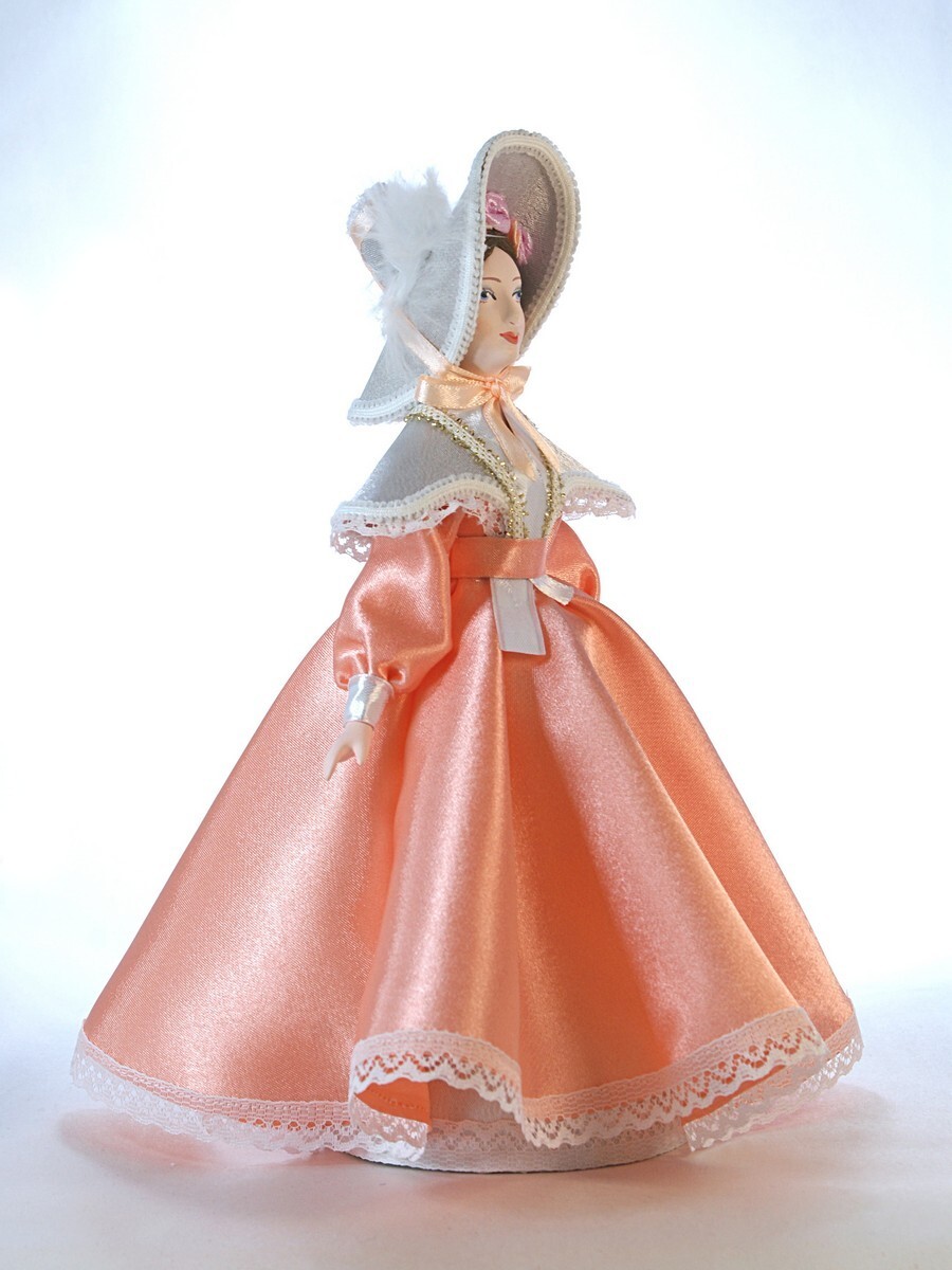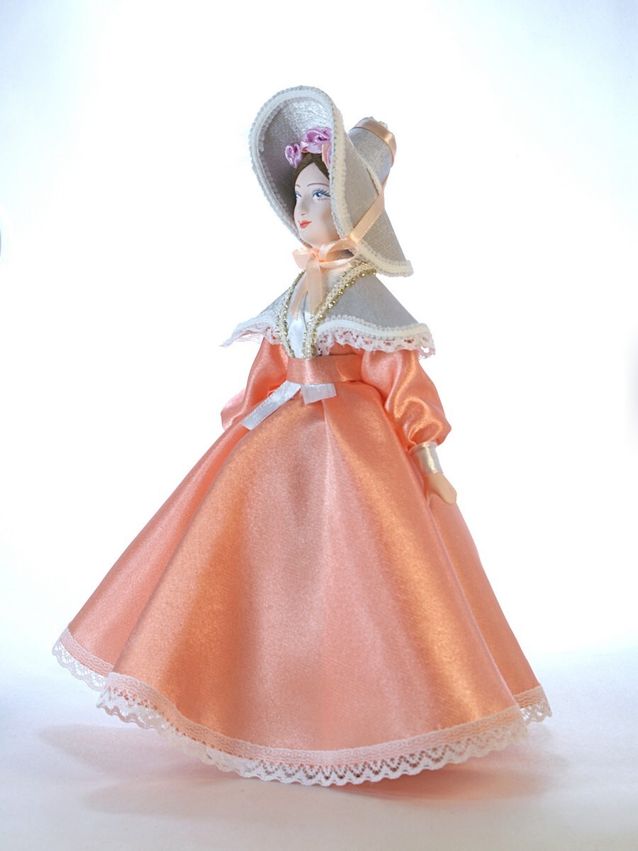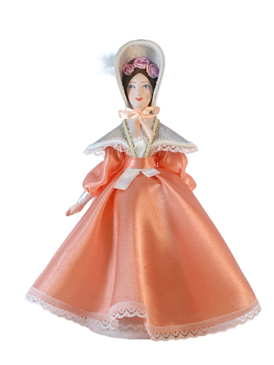 Кукла коллекционная Петербурженка в модном европейском платье — это изящный, трогательный сувенир, который станет прекрасным подарком вашим близким, друзьям или гармонично дополнит интерьер, украсит дом или обогатит коллекцию. Фигурка представляет собой барышню в стиле французских мод середины 19 столетия, олицетворяющую изысканность и элегантность русского дворянства.