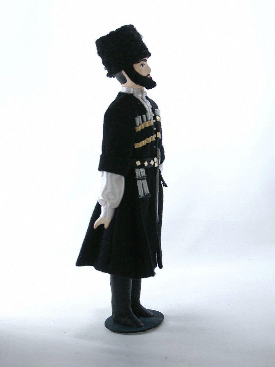 Кукла Чеченец создана профессиональным художником-кукольником из качественного, безопасного материала. Голова, торс, руки и ноги выполнены из фарфора в собственной керамической мастерской, расписаны акриловыми/темперными красками.