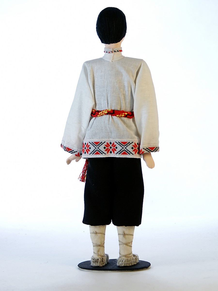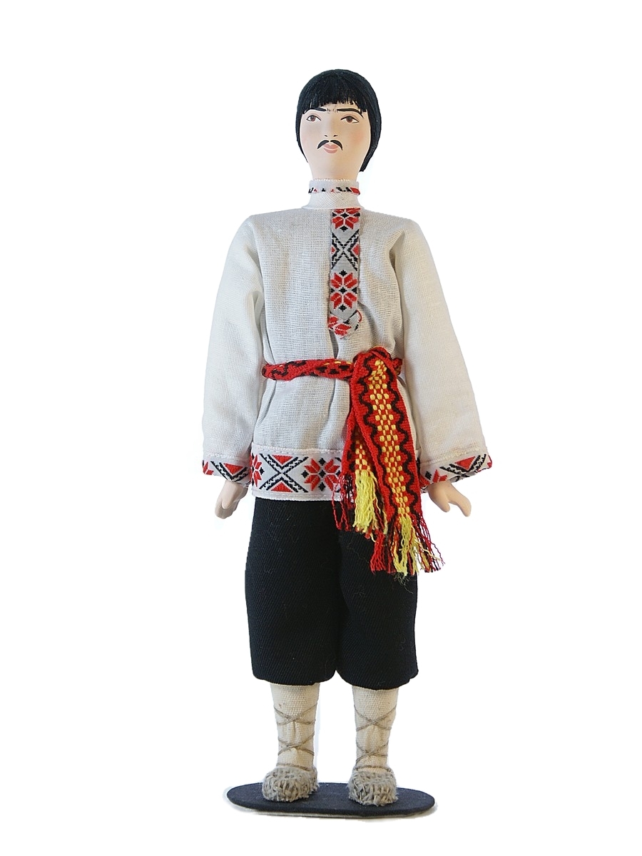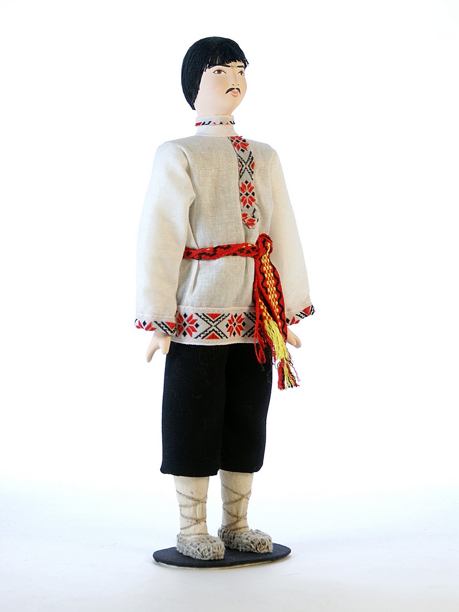 Кукла Потешного промысла в чувашском праздничном мужском костюме ручной работы из коллекции Народы России. Материал фарфор, текстиль. Высота 25 см. Артикул 0844.\n\n[video width="544" height="720" mp4="https://souvenirdolls.com/wp-content/uploads/2020/05/Чуваш.mp4" autoplay="true"][/video]
