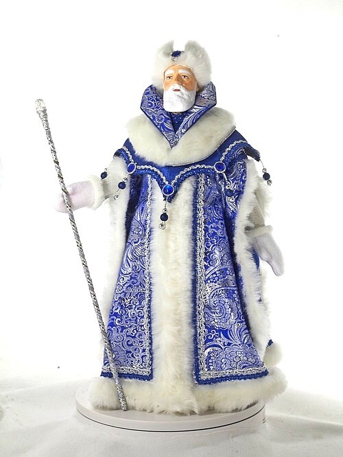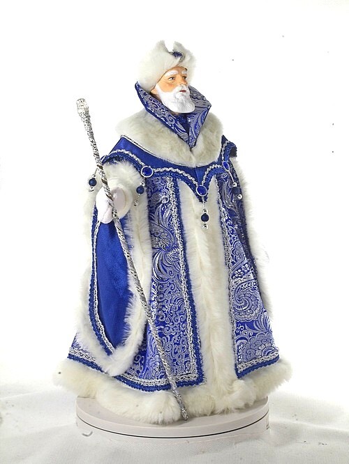 Кукла Потешного промысла Дед Мороз в боярской шубе из парчи с посохом. Дед Мороз Императорский. Материал фарфор, текстиль. Высота 38 см. Вес 490 гр. Артикул 2339.