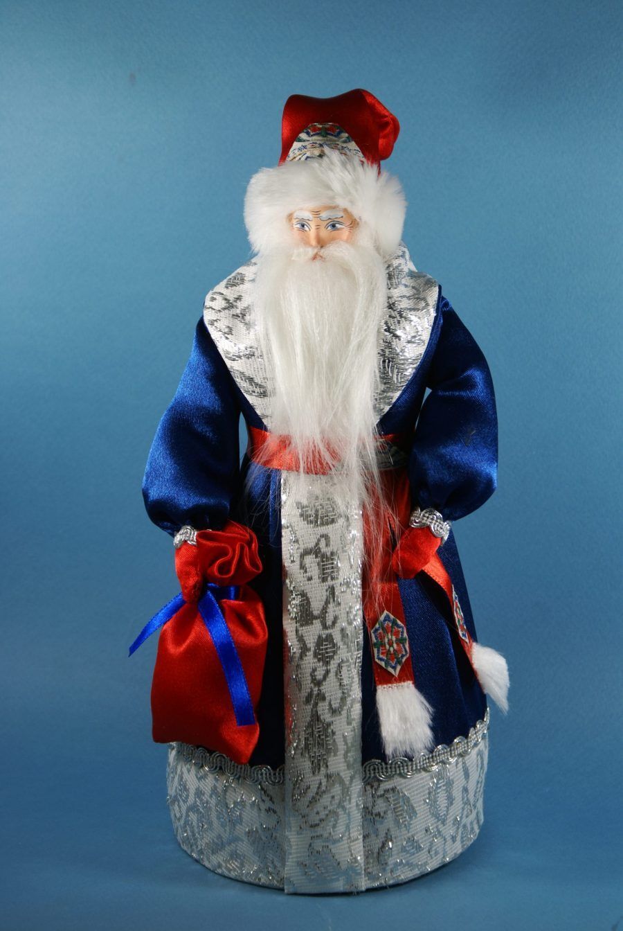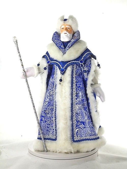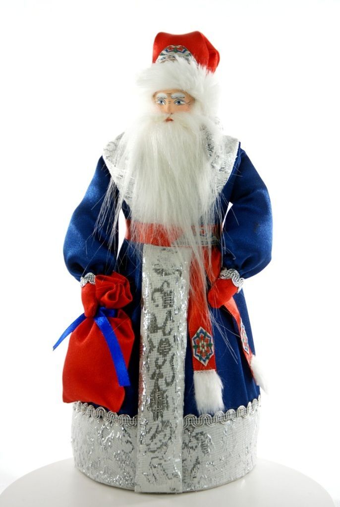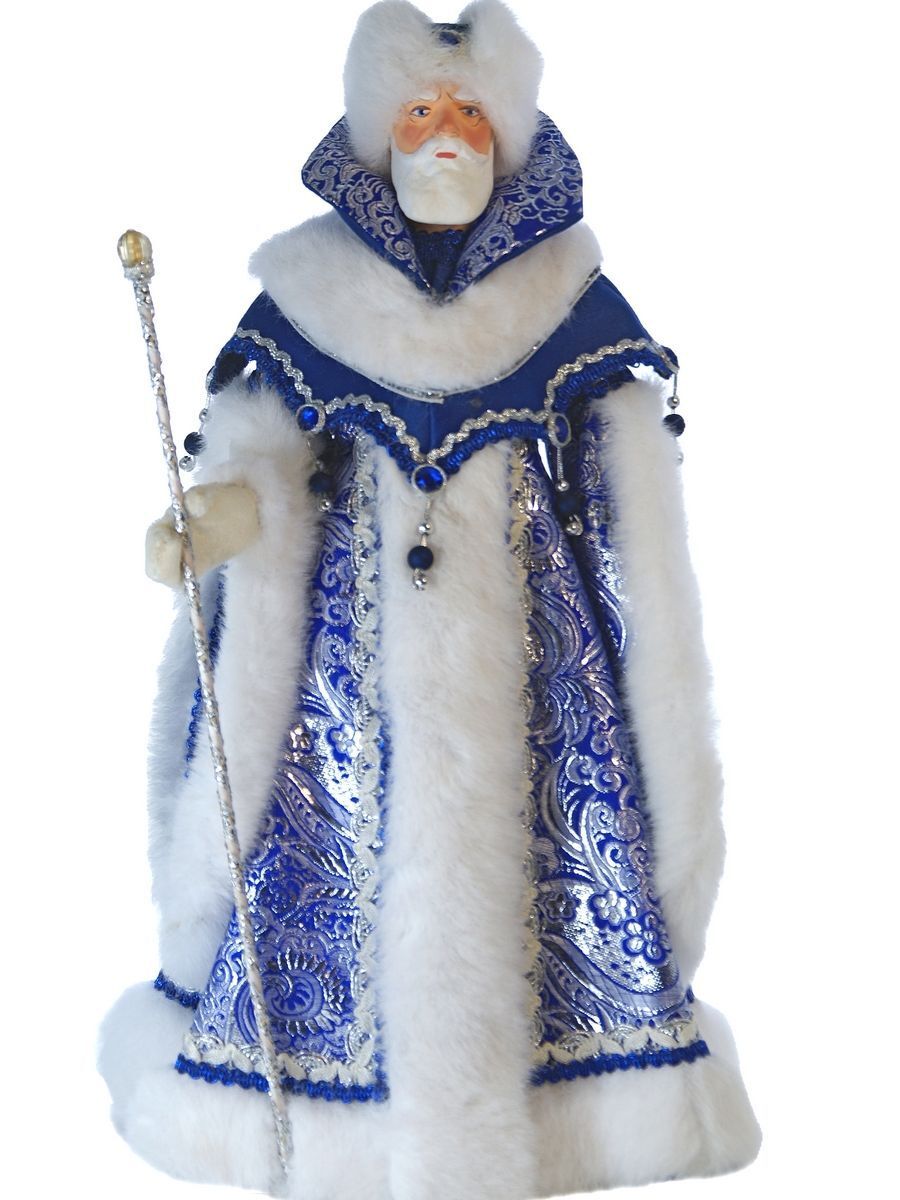 Интерьерная кукла ручной работы Дед Мороз в боярской шубе из парчи, с посохом. Новогодняя игрушка под ёлку ручной работы