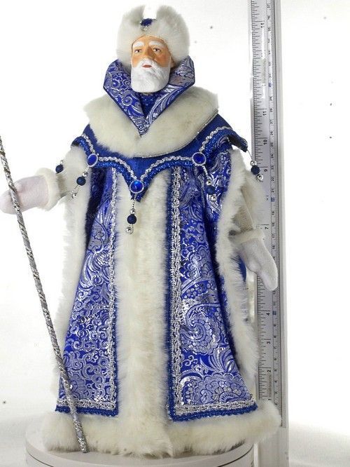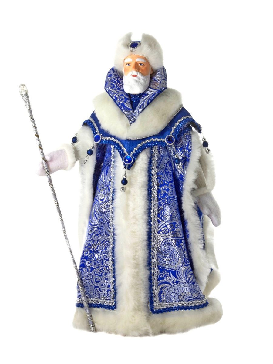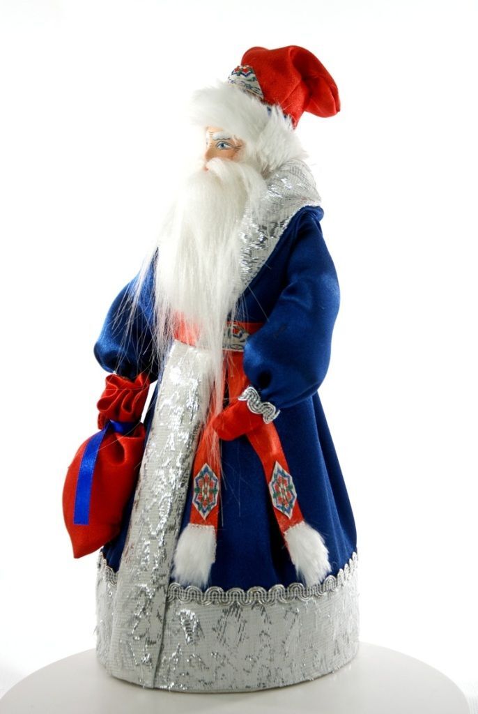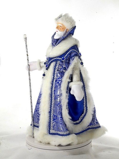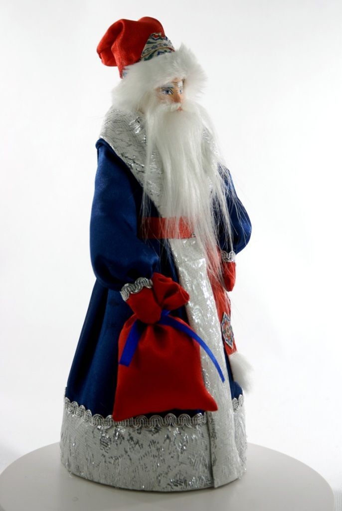 Интерьерная кукла ручной работы Дед Мороз в боярской шубе из парчи, с посохом. Новогодняя игрушка под ёлку ручной работы