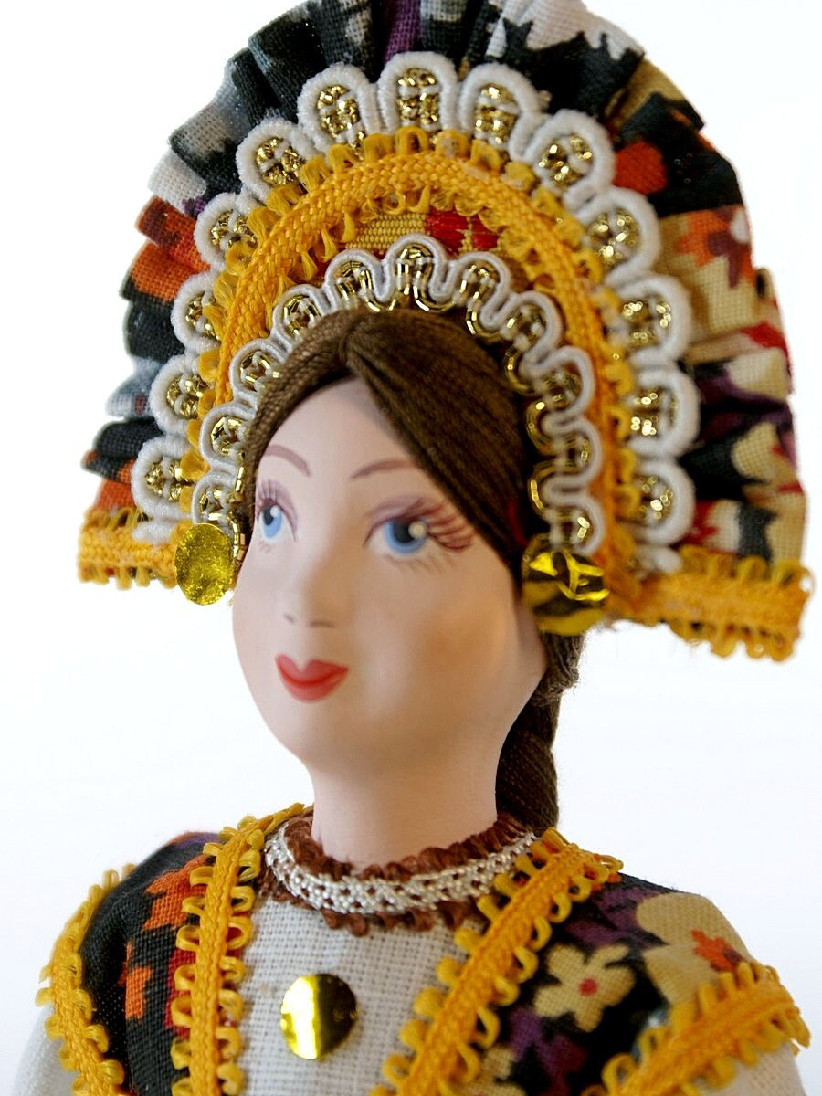 Кукла Потешного промысла девушка в русском костюме. Материал фарфор, текстиль. Высота 17 см. Арт.0871.