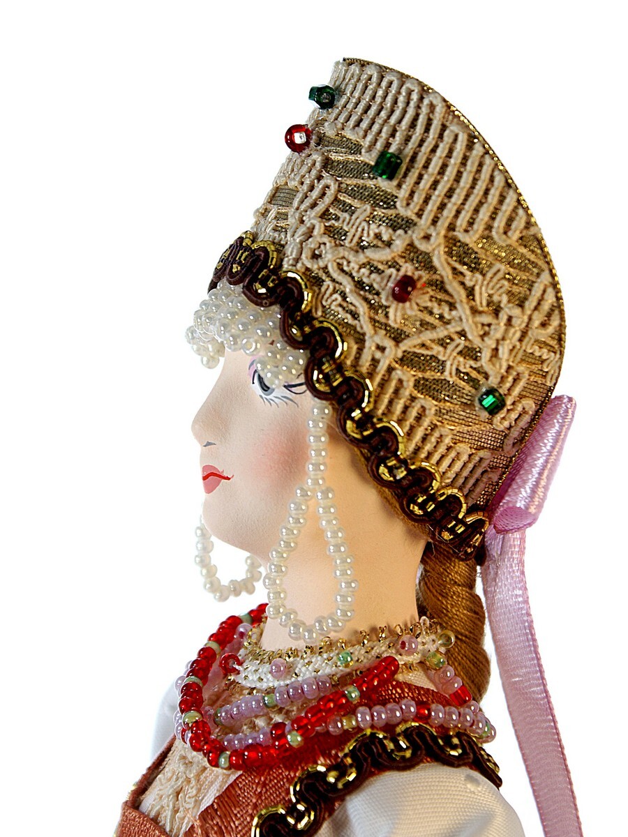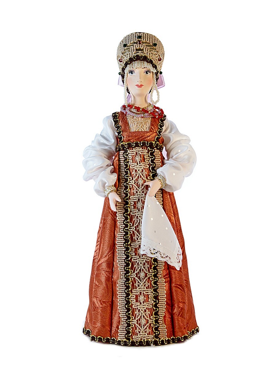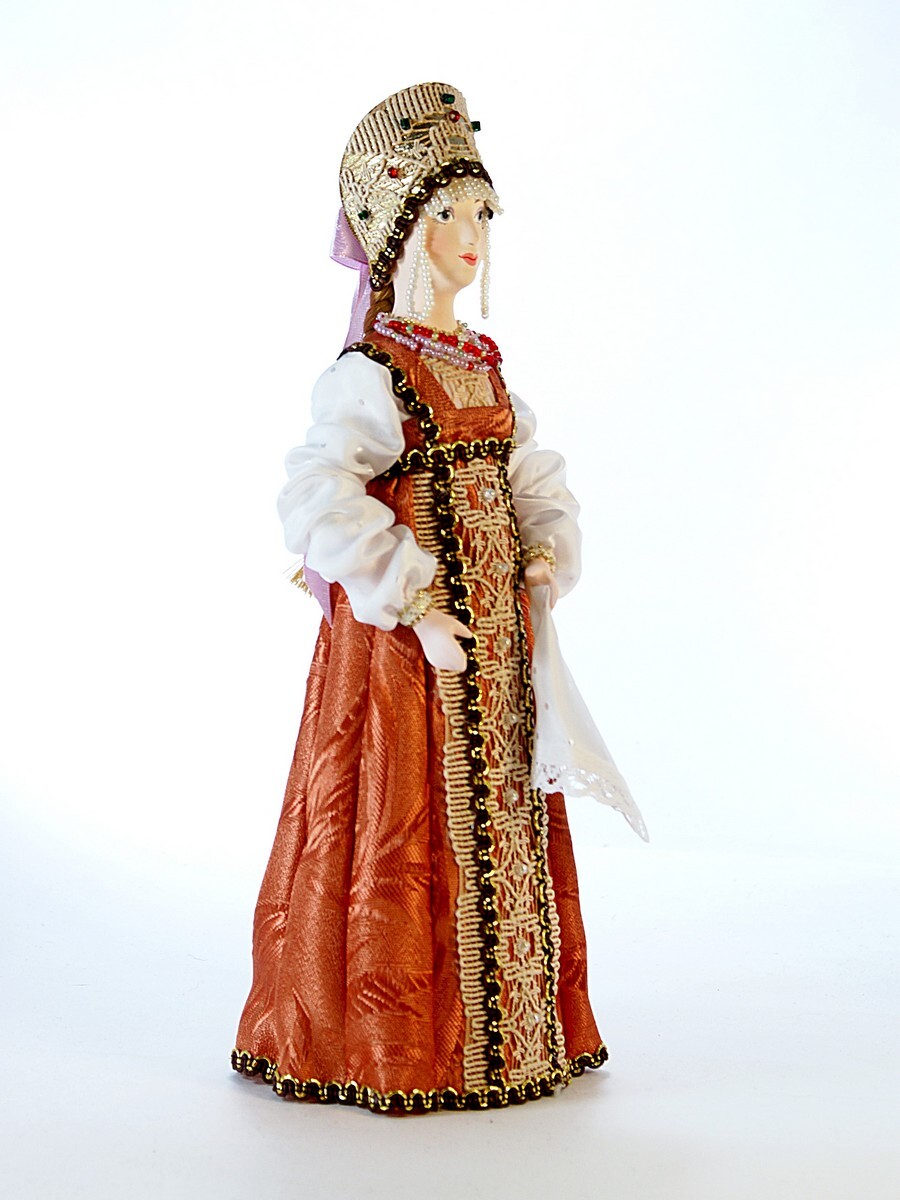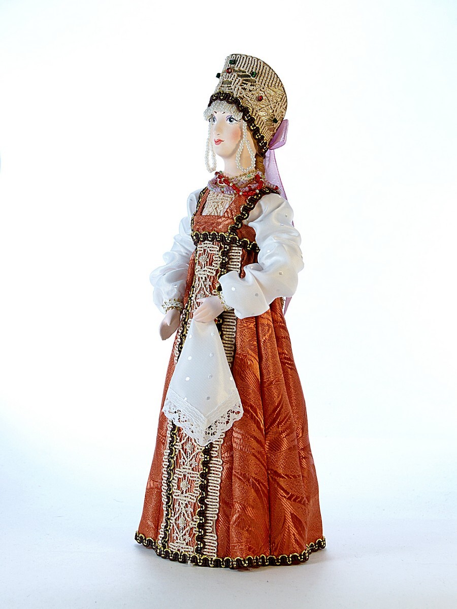 Кукла Потешного промысла Девушка в русском народном костюме. Материал фарфор, текстиль. Высота 26 см. Артикул 1172.