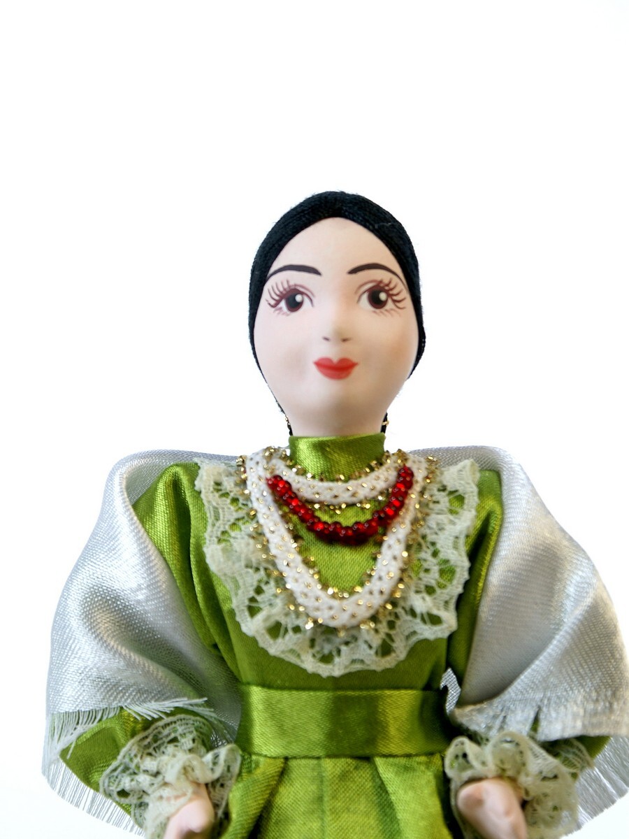 Изысканное творение петербургских мастеров — миниатюрная кукла, воплощающая образ донской казачки конца XIX века. Созданная в традициях «Потешного промысла», эта статуэтка передаёт всю грацию и самобытность казачьего народа.