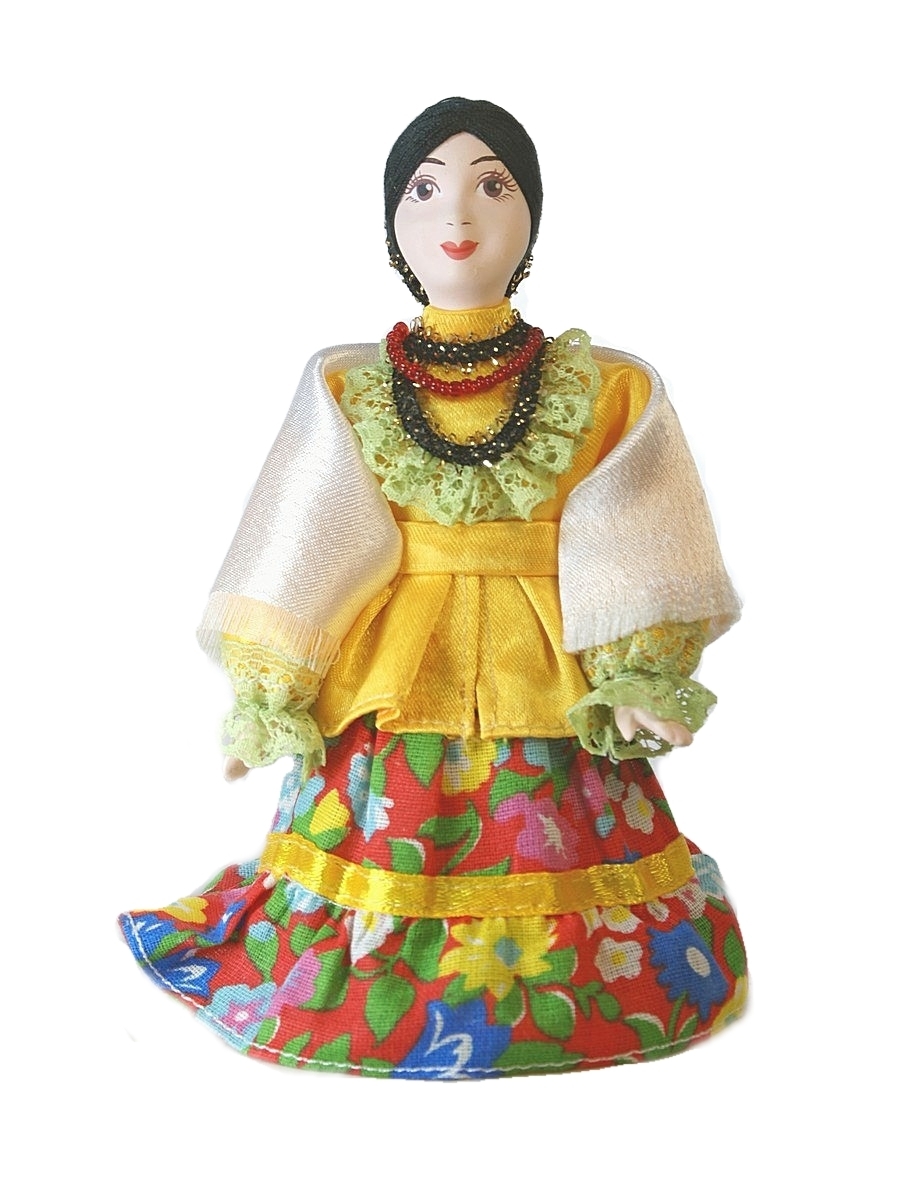 Изысканное творение петербургских мастеров — миниатюрная кукла, воплощающая образ донской казачки конца XIX века. Созданная в традициях «Потешного промысла», эта статуэтка передаёт всю грацию и самобытность казачьего народа.
